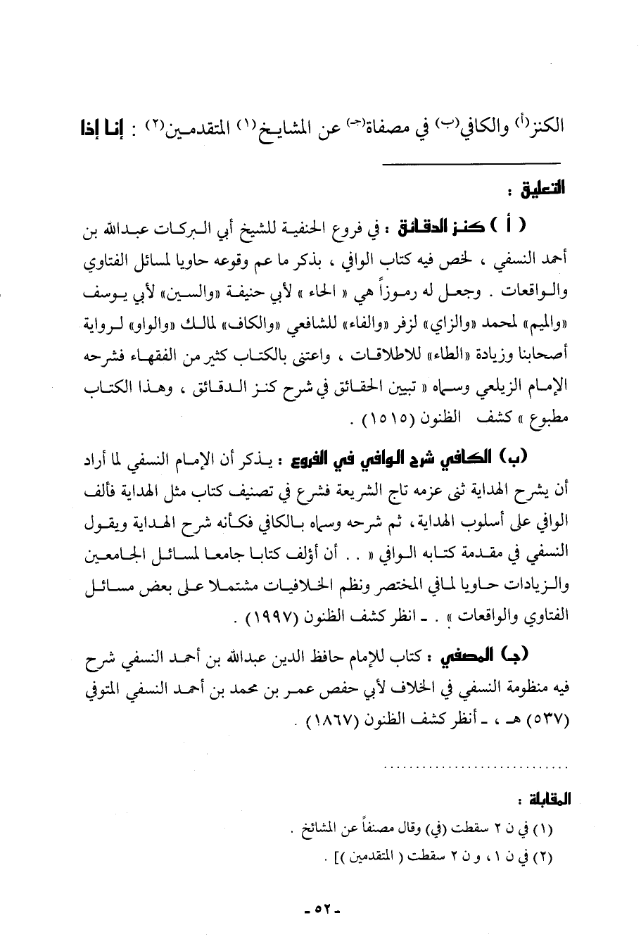 الْكَنْز وَالْكَافِي فِي مصفاة عَن الْمَشَايِخ الْمُتَقَدِّمين إِنَّا إِذا
