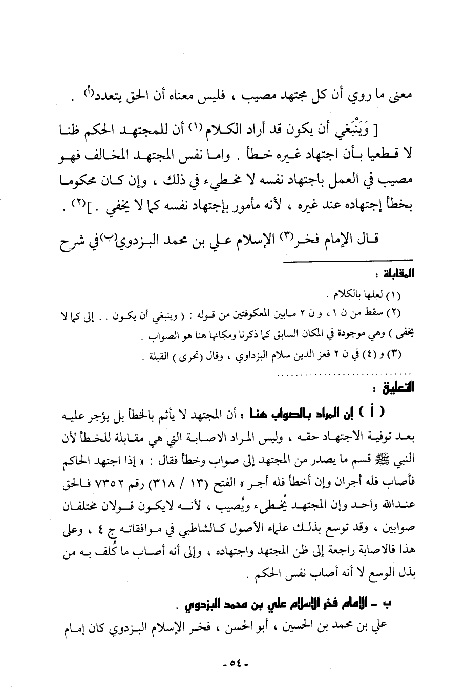 قَالَ الإِمَام فَخر الْإِسْلَام عَليّ بن مُحَمَّد الْبَزْدَوِيّ فِي شرح
