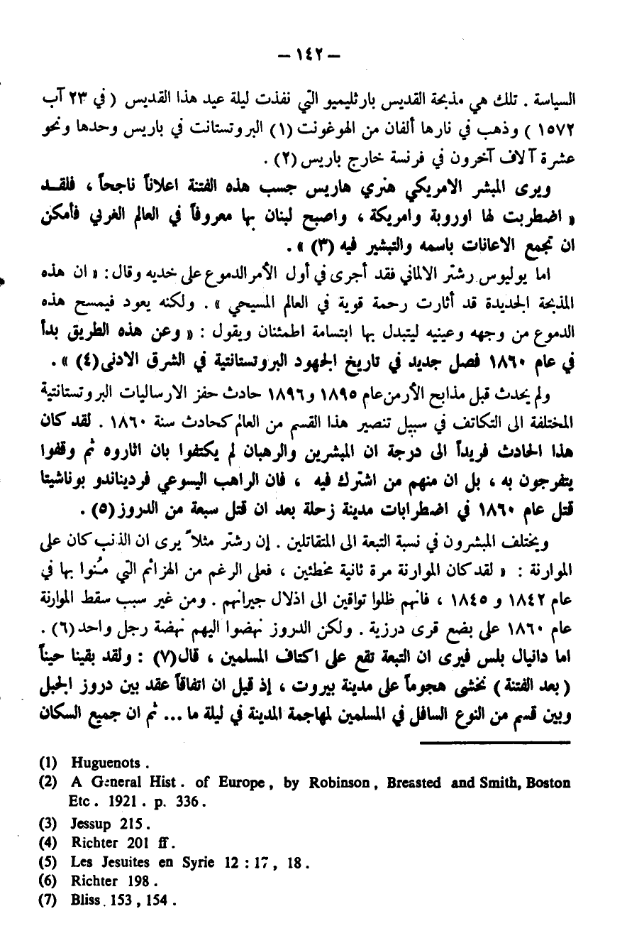 ولم يحدث قبل مذابح الأرمن عام 1895 و 1896 حادث حفز الإرساليات البروتستانتية المختلفة إلى التكاتف في سبيل تنصير هذا القسم من العالم كحادث سنة 1860. لقد كان هذا الحادث فريدًا إلى درجة أن المبشرين والرهبان لم يكتفوا بأن أثاروه ثم وقفوا يتفرجون به، بل إن منهم من اشترك فيه، فإن الراهب اليسوعي (فرديناندو بوناشيتا) قتل عام 1860 في اضطرابات مدينة زحلة بعد أن قتل سبعة من الدروز (¬5).