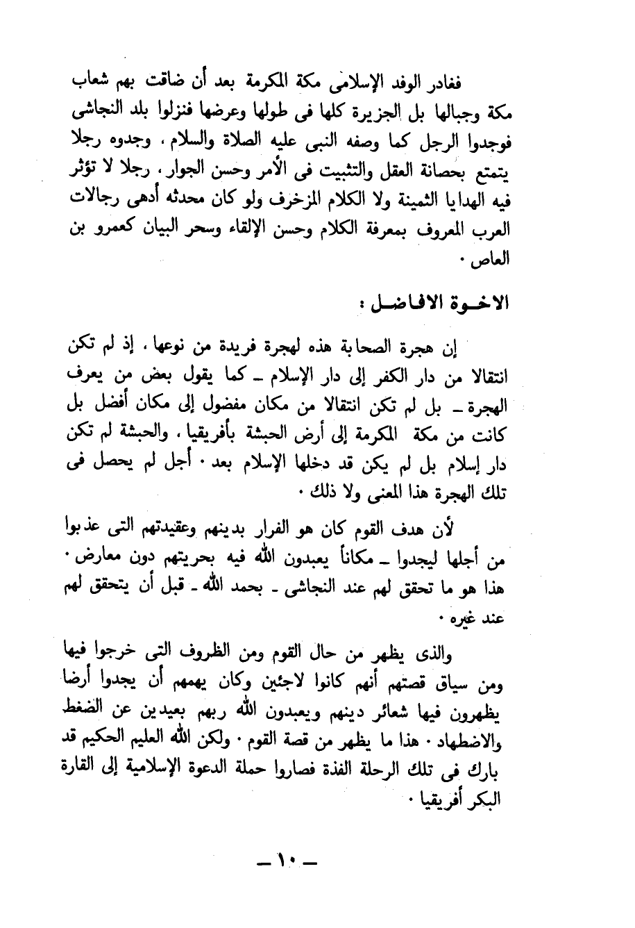 إن هجرة الصحابة هذه لهجرة فريدة من نوعها، إذ لم تكن انتقالا من دار الكفر إلى دار الإسلام كما يقول بعض من يعرف الهجرة بل لم تكن انتقالا من مكان مفضول إلى مكان أفضل بل كانت من مكة المكرمة إلى أرض الحبشة بأفريقيا، والحبشة لم تكن دار إسلام بل لم يكن قد دخلها الإسلام بعد. أجل لم يحصل في تلك الهجرة هذا المعنى ولا ذلك.