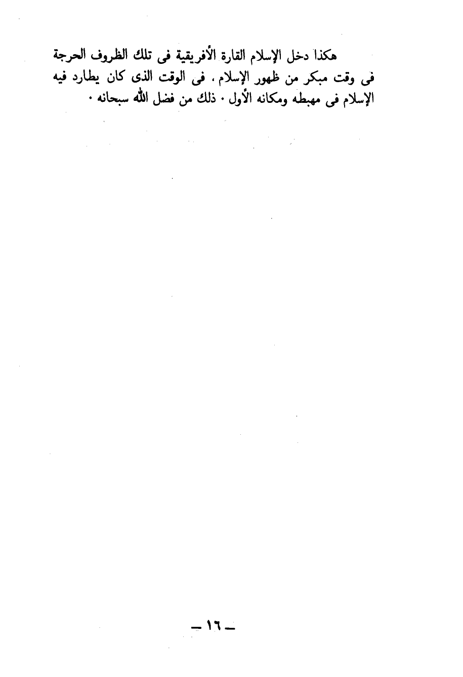 هكذا دخل الإسلام القارة الأفريقية في تلك الظروف الحرجة في وقت مبكر من ظهور الإسلام, في الوقت الذي كان يطارد فيه الإسلام في مهبطه ومكانه الأول. ذلك من فضل الله سبحانه.