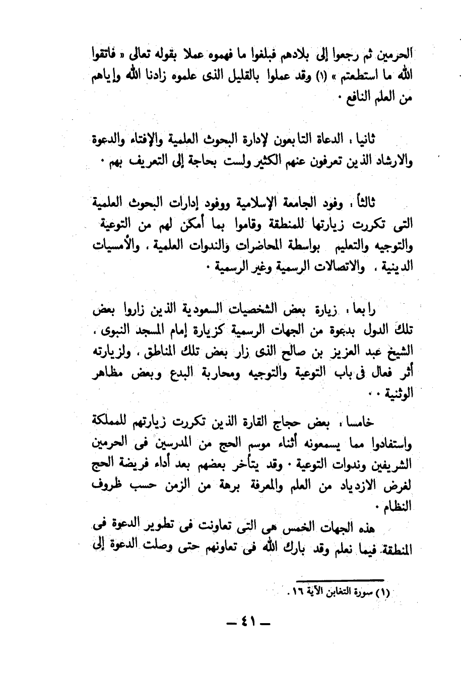 ثالثا: وفود الجامعة الإسلامية ووفود إدارات البحوث العلمية التي تكررت زيارتها للمنطقة وقاموا بما أمكن لهم من التوعية والتوجيه والتعليم بواسطة المحاضرات والندوات العلمية، والأمسيات الدينية، والاتصالات الرسمية وغير الرسمية.