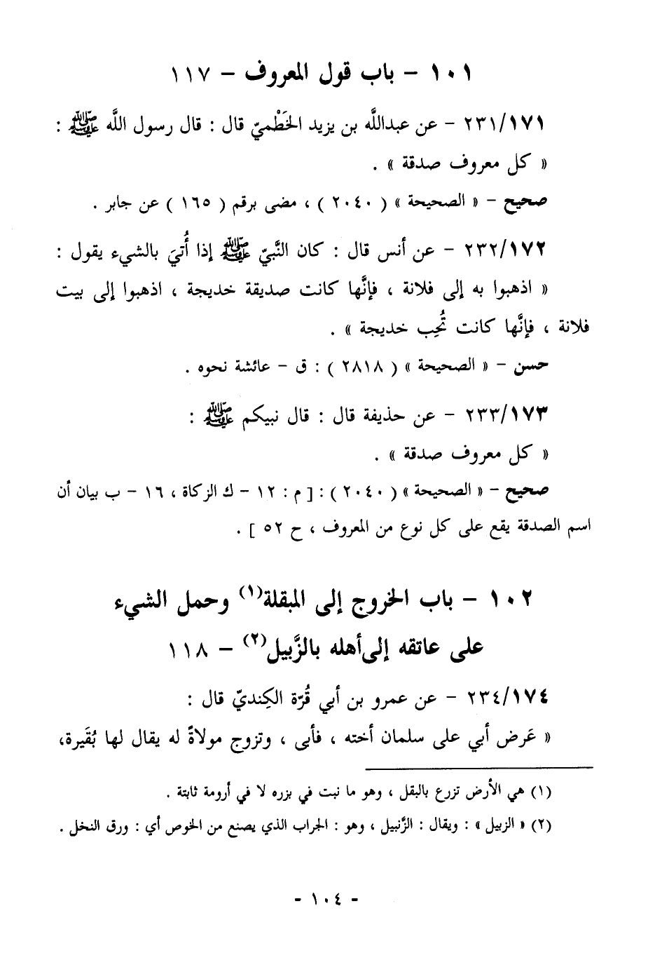 104- بَابُ الْخُرُوجِ إِلَى الْمَبْقَلَةِ (¬1) وَحَمَلِ الشَّيْءِ عَلَى عَاتِقِهِ إلى أهله بالزبيل (¬2) - 118