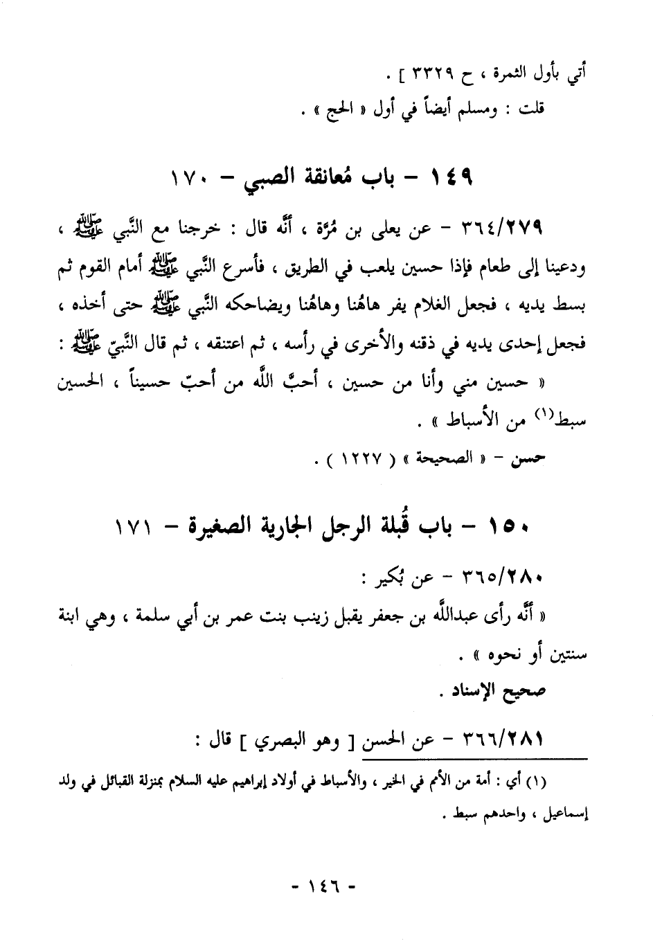 153- بَابُ قُبْلَةِ الرَّجُلِ الْجَارِيَةَ الصغيرة- 171