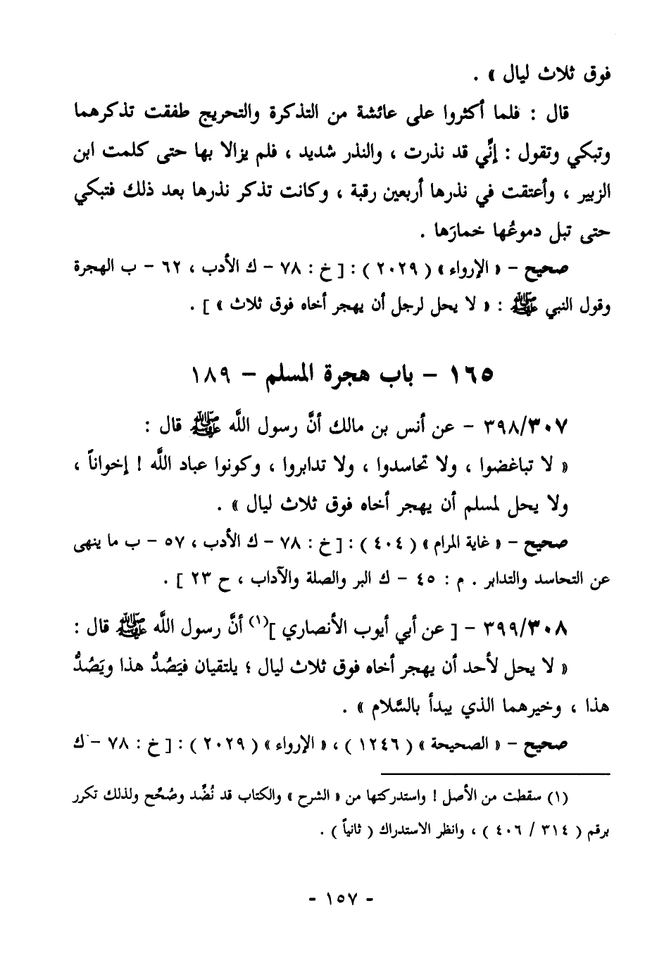 (¬1) سقطت من الأصل! واستدركتها من " الشرح" والكتاب قد نُضّد وصحح ولذلك تكرر برقم (314/406) وانظر التنبيه ص22.