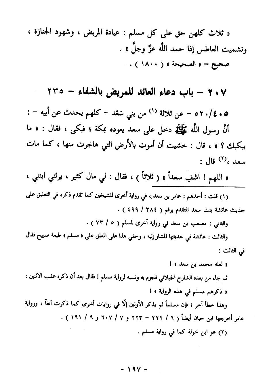 210- بَابُ دُعَاءِ الْعَائِدِ للمريض بالشفاء- 235