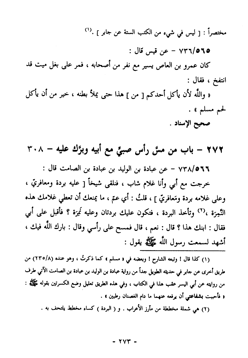 276- بَابُ مَنْ مَسَّ رَأْسَ صَبِيٍّ مع أبيه وبرّك عليه - 308