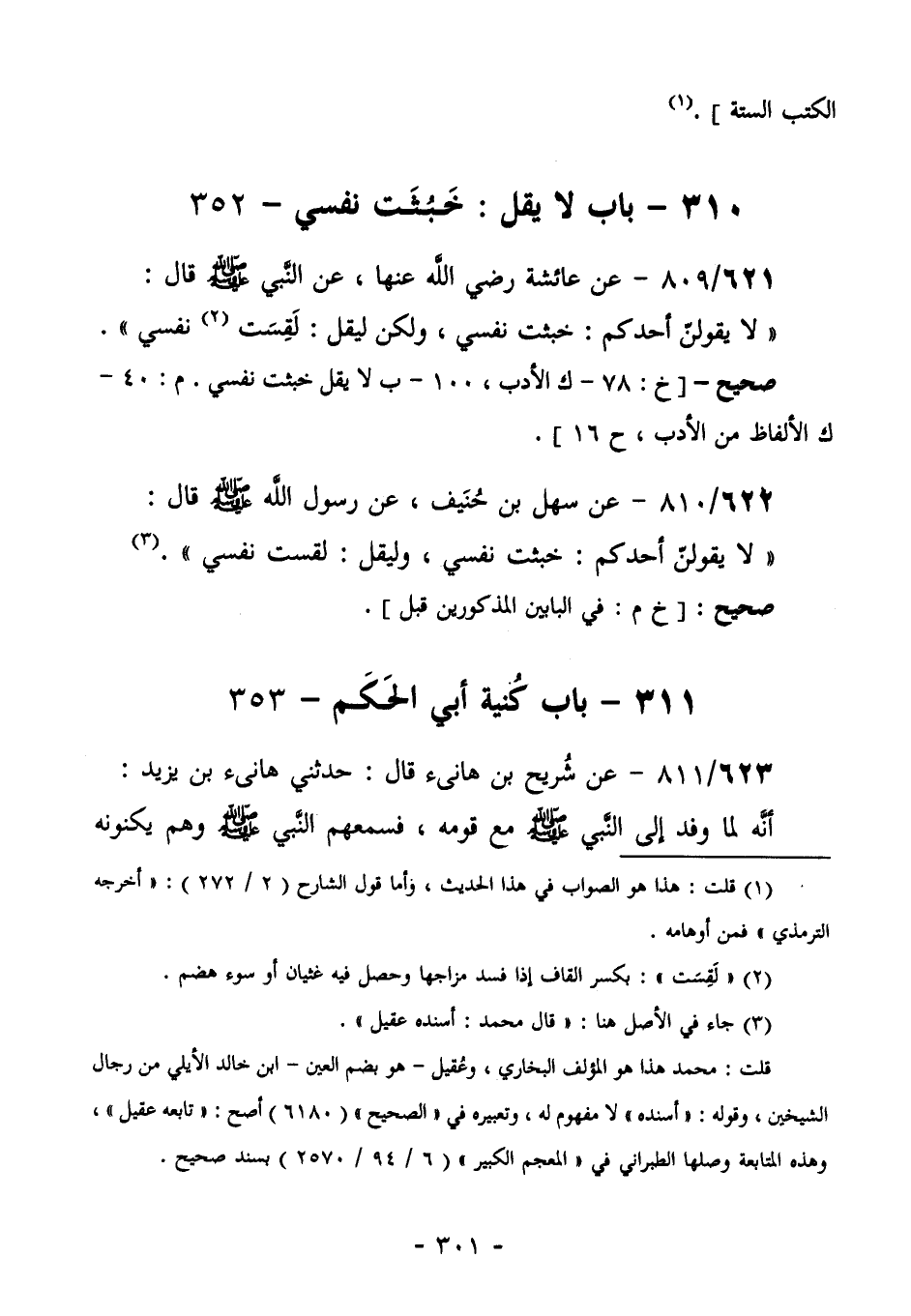 627/811- (صحيح) عَنْ شُرَيْحِ بْنِ هَانِئٍ قَالَ: حَدَّثَنِي هانئُ بْنُ يَزِيدَ، أَنَّهُ لَمَّا وَفَدَ إِلَى النَّبِيِّ صَلَّى اللهُ عَلَيْهِ وَسَلَّمَ مَعَ قَوْمِهِ فَسَمِعَهُمُ النَّبِيُّ صَلَّى اللهُ عَلَيْهِ وسلم وهم يكنونه