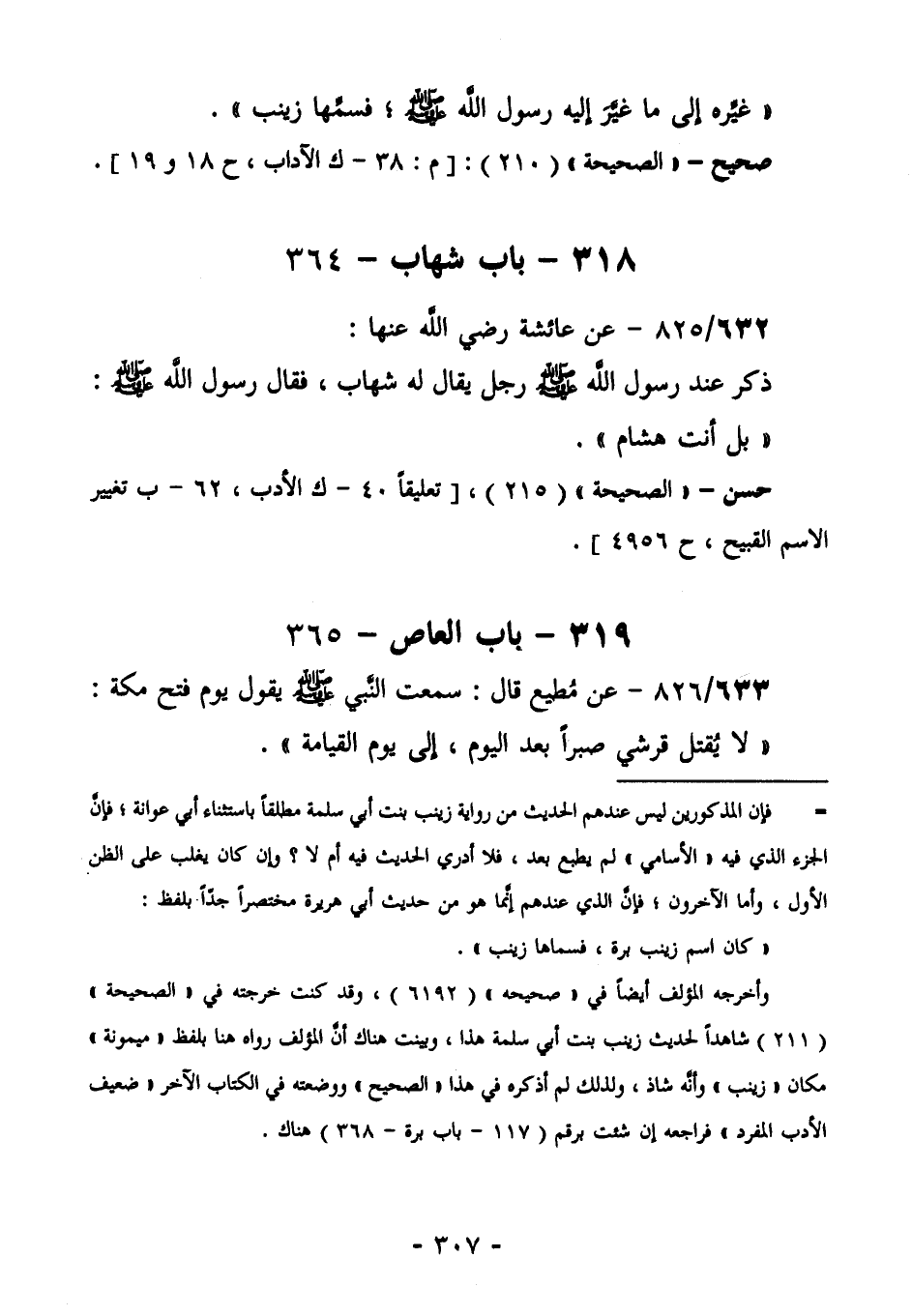 636/825- (حسن) عَنْ عَائِشَةَ رَضِيَ اللَّهُ عَنْهَا: ذُكِرَ عِنْدَ رَسُولِ اللَّهِ صَلَّى اللهُ عَلَيْهِ وَسَلَّمَ رجلٌ يُقَالُ لَهُ: شِهَابٌ. فَقَالَ رَسُولُ اللَّهِ صَلَّى اللهُ عَلَيْهِ وَسَلَّمَ: "بَلْ أنت هشام".
