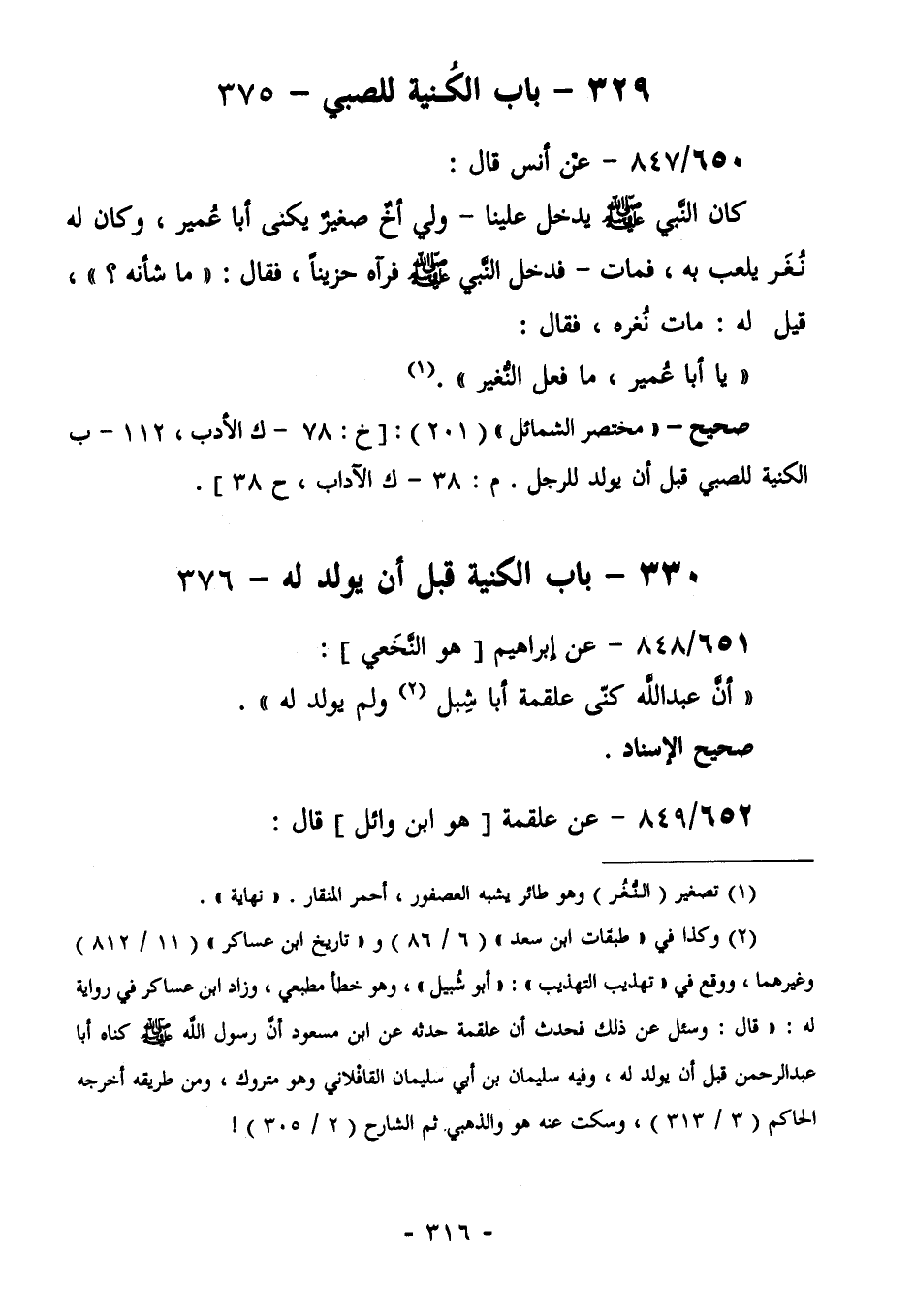 334- بَابُ الكنية قيل أن يولد له- 376