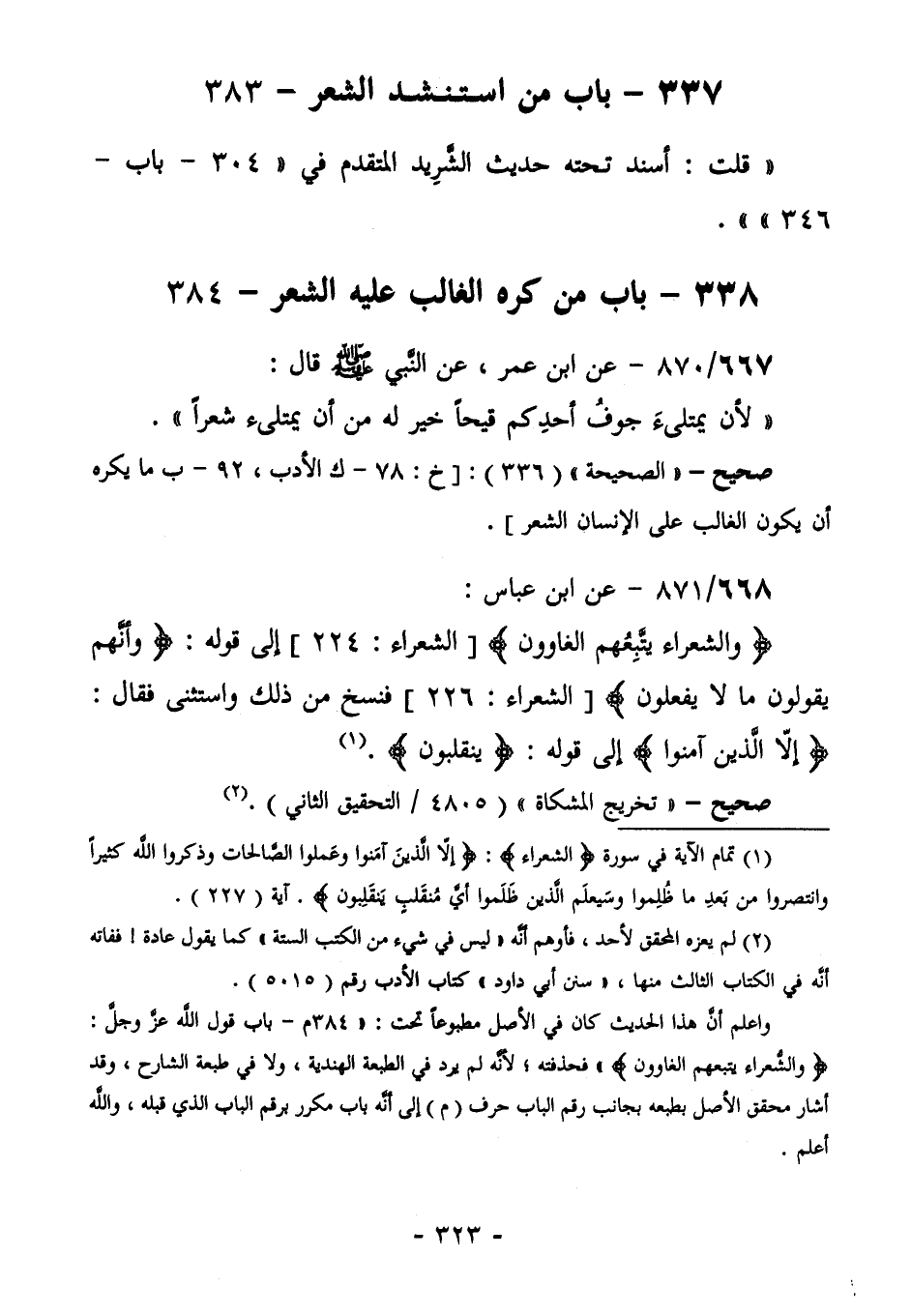 342- بَابُ مَنْ كَرِهَ الْغَالِبَ عَلَيْهِ الشعر - 384