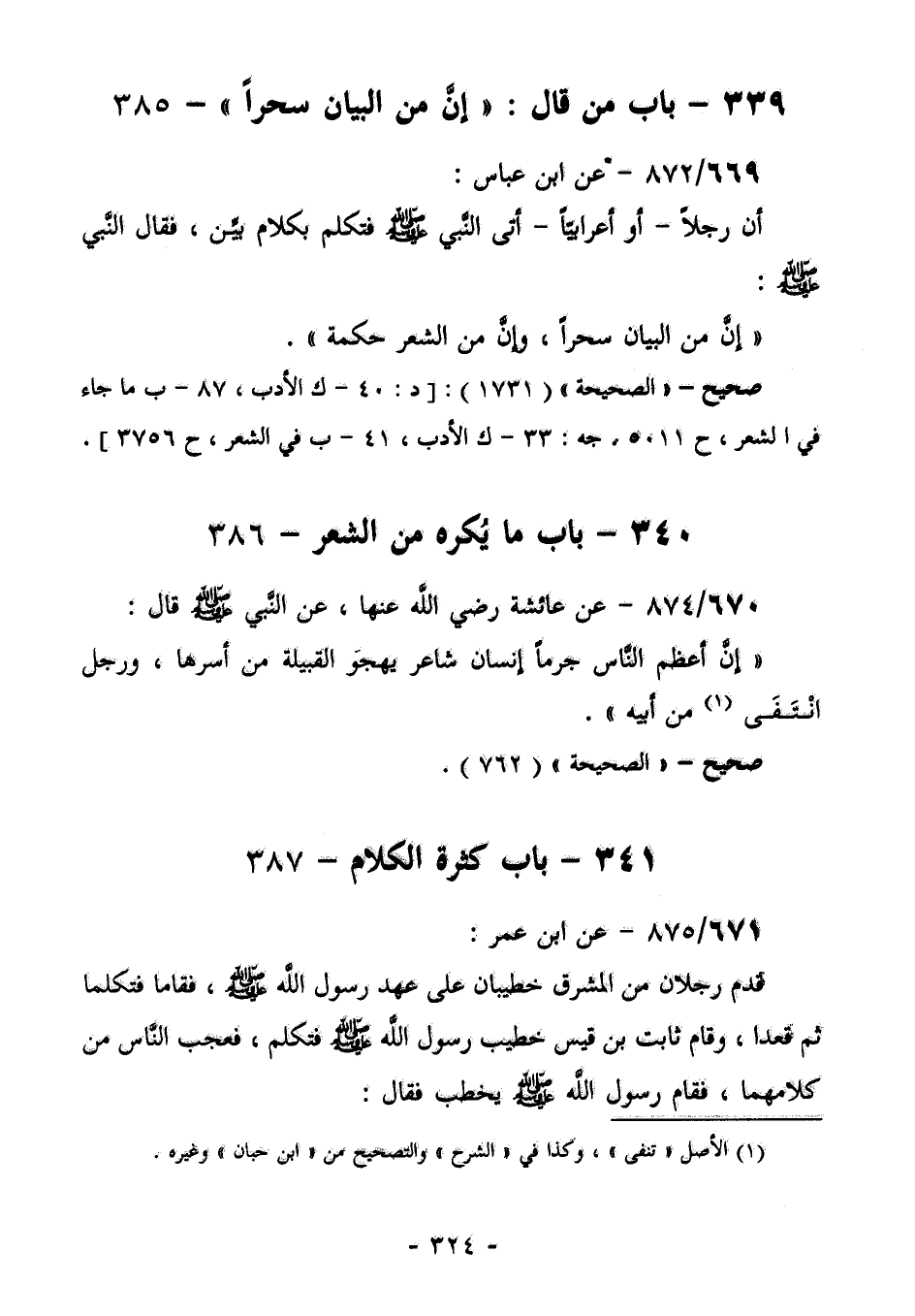 343- بَابُ مَنْ قَالَ: " إِنَّ مِنَ البيان سحراً"- 385