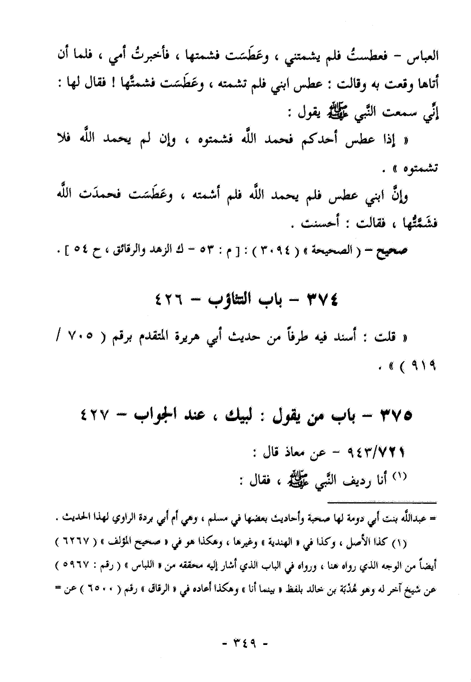 397- بَابُ مَنْ يَقُولُ: لَبَّيْكَ، عِنْدَ الجواب- 427