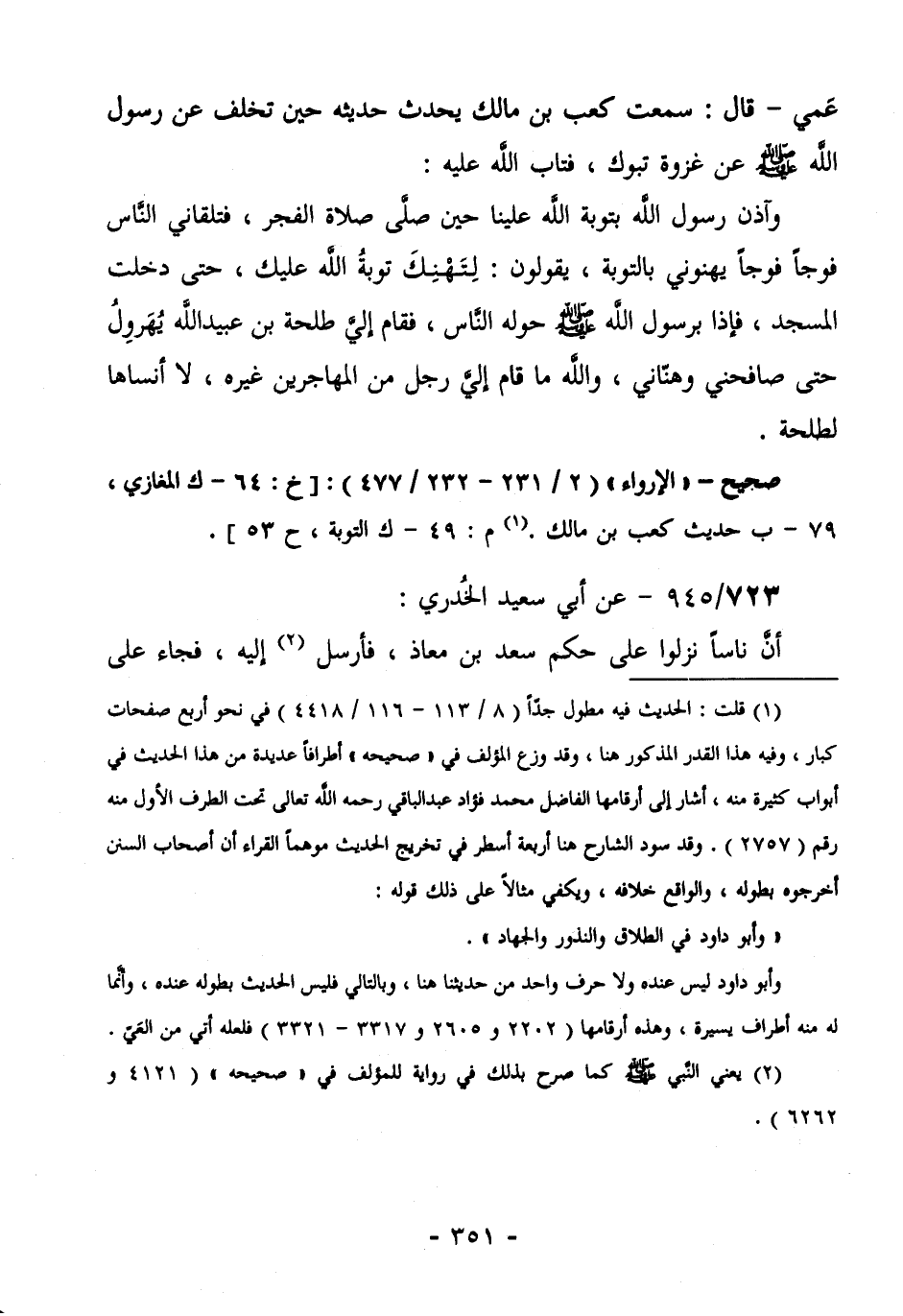 727/945- عَنْ أَبِي سَعِيدٍ الْخُدْرِيِّ: أَنَّ نَاسًا نَزَلُوا عَلَى حُكْمِ سَعْدِ بْنِ مُعَاذٍ فَأَرْسَلَ (¬1) إِلَيْهِ، فَجَاءَ على