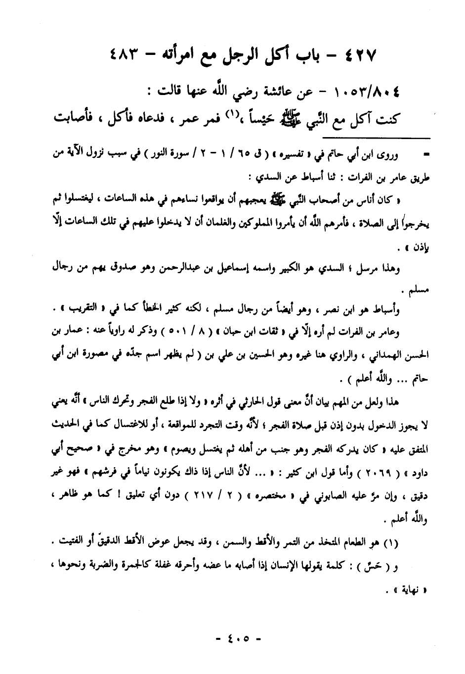431- بَابُ أَكْلِ الرَّجُلِ مَعَ امْرَأَتِهِ - 483