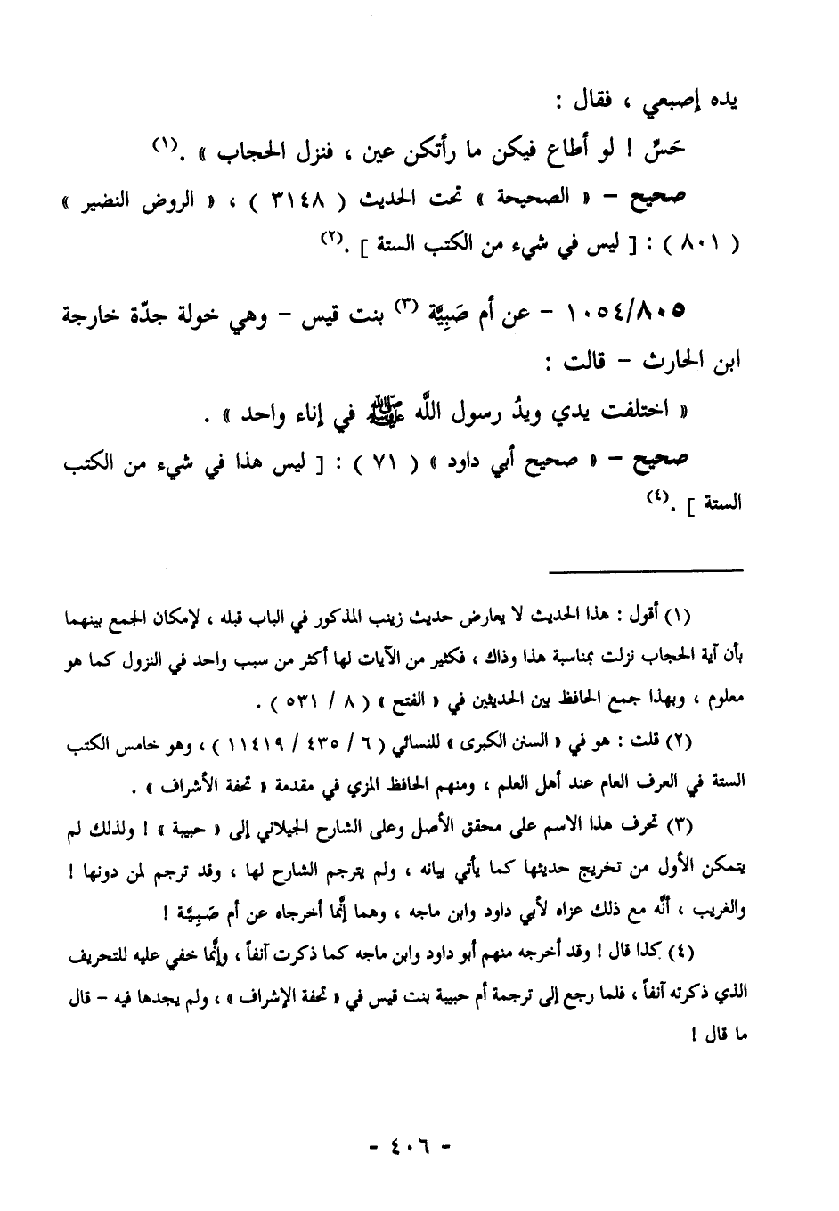 (¬2) تحرف هذا الاسم على ابن عبد الباقي وعلى الشارح الجيلاني إلى "حبيبة"! ولذلك لم يتمكن الأول من تخريج حديثها كما يأتي بيانه، ولم يترجم الشارح لها، وقد ترجم لمن دونها! والغريب، أنه مع ذلك عزاه لأبي داود وابن ماجه، وهما إنما أخرجاه عن أم صبية!