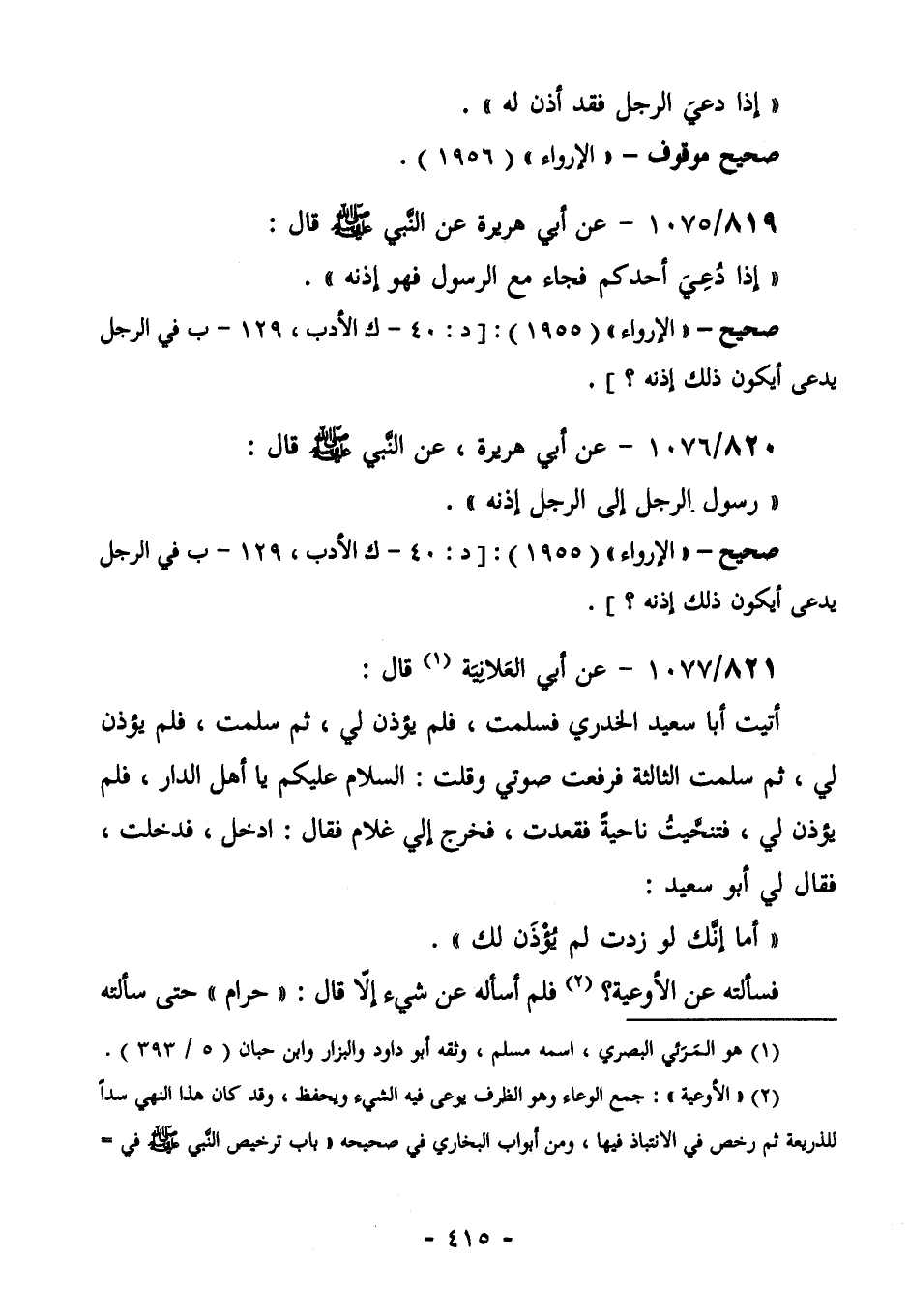 824/1076 (صحيح) عَنْ أَبِي هُرَيْرَةَ عَنِ النَّبِيِّ صَلَّى اللهُ عَلَيْهِ وَسَلَّمَ قَالَ: " رَسُولُ الرَّجُلِ إِلَى الرَّجُلِ إِذْنُهُ".
