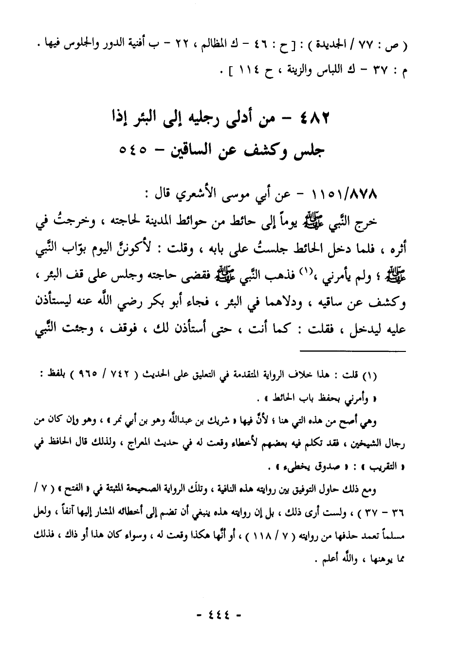 486- بَابُ مَنْ أَدْلَى رِجْلَيْهِ إِلَى الْبِئْرِ إِذَا جَلَسَ وَكَشَفَ عَنِ الساقين- 545
