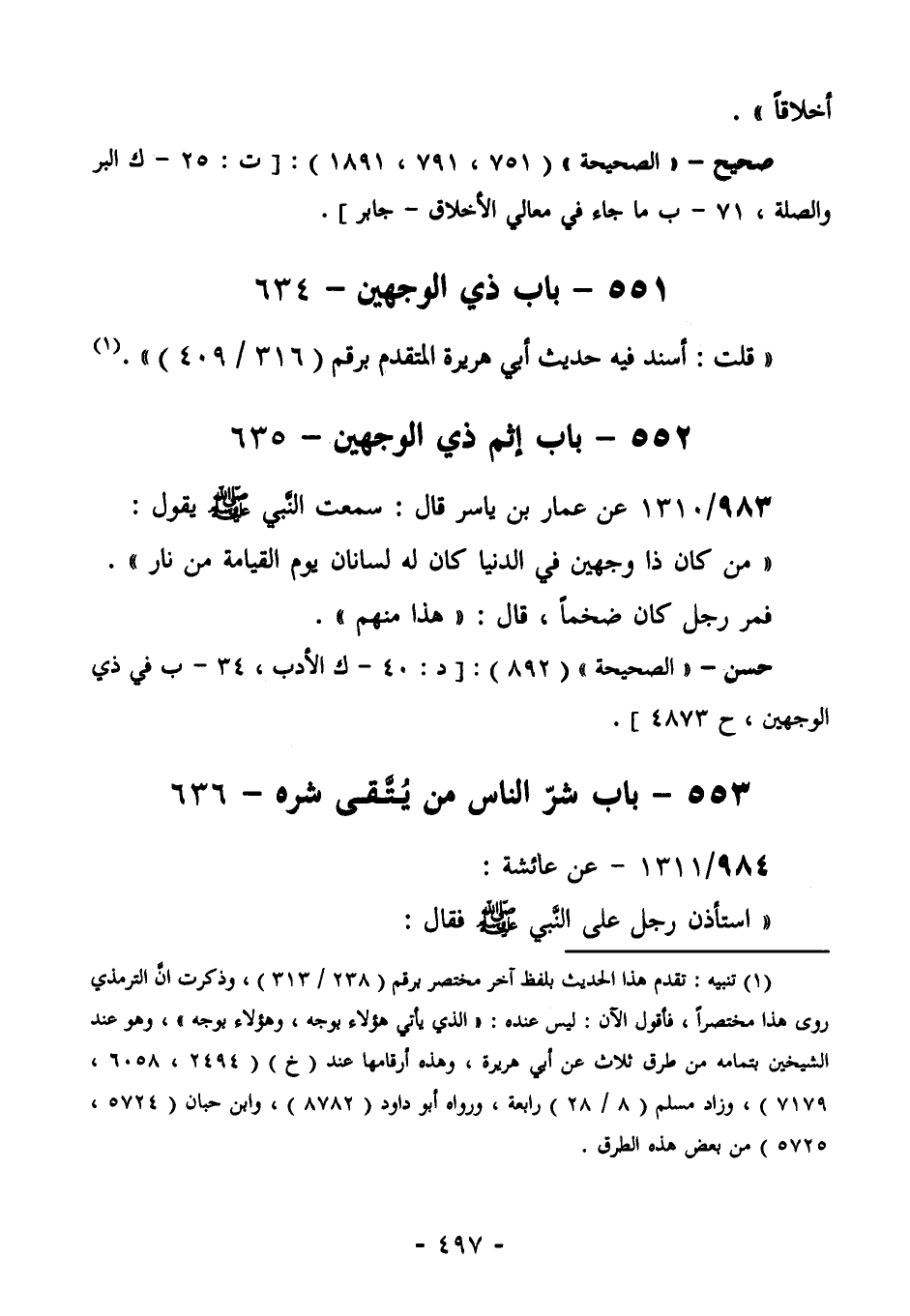 557- بَابٌ شَرُّ النَّاسِ من يُتقى شره - 636