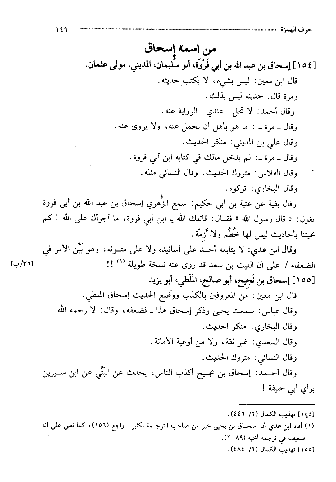 [154] إِسْحَاق بن عبد الله بن أبي فَرْوَة، أَبُو سُلَيْمَان، الْمَدِينِيّ، مولى عُثْمَان.