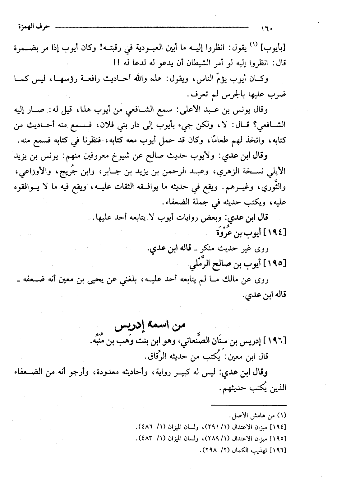 قَالَ ابْن عدي: وَبَعض رِوَايَات أَيُّوب لَا يُتَابِعه أحد عَلَيْهَا.