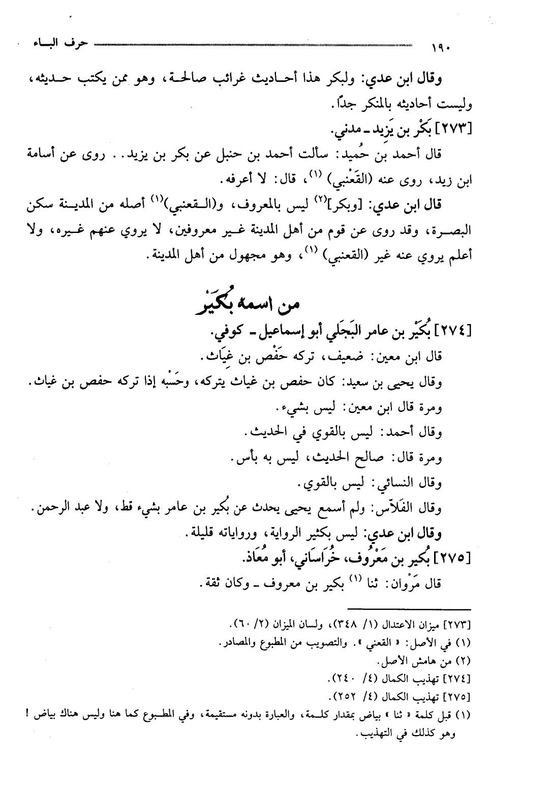 قَالَ ابْن عدي: [وَبكر] لَيْسَ بِالْمَعْرُوفِ، و (القعْنبِي) أَصله من الْمَدِينَة سكن الْبَصْرَة، وَقد روى عَن قوم من أهل الْمَدِينَة غير معروفين، لَا يروي عَنْهُم غَيره، وَلَا أعلم يروي عَنهُ غير (القعْنبِي) ، وَهُوَ مَجْهُول من أهل الْمَدِينَة.