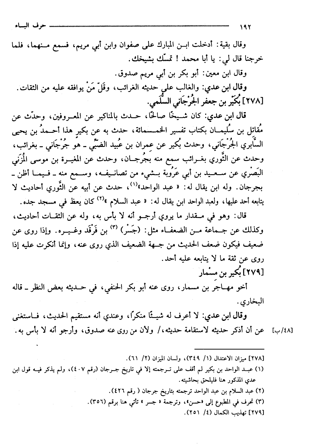 [278] بكير بن جَعْفَر الْجِرْجَانِيّ السّلمِيّ.