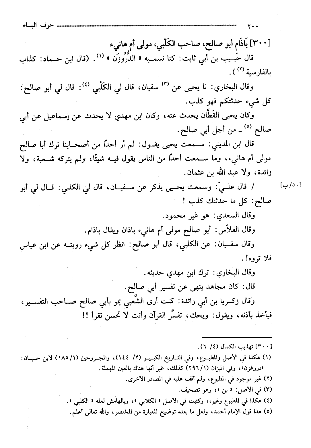 [300] باذام أَبُو صَالح، صَاحب الْكَلْبِيّ، مولى أم هَانِيء