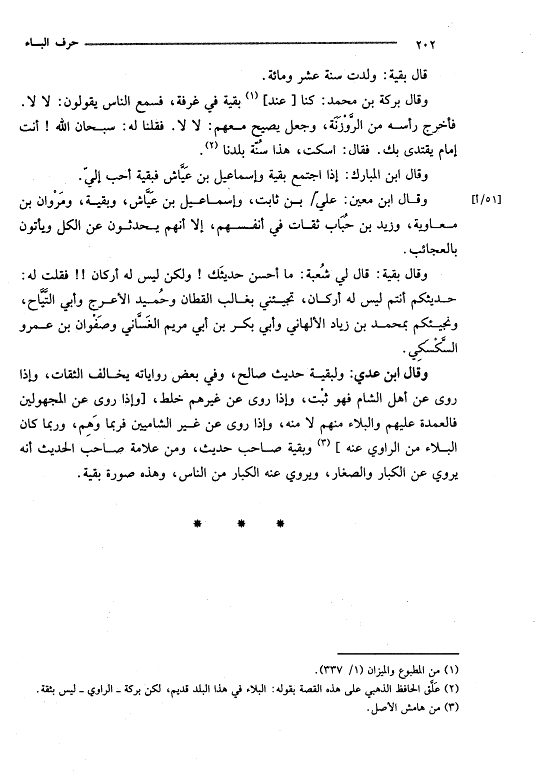 وَقَالَ ابْن عدي: ولبقية حَدِيث صَالح، وَفِي بعض رواياته يُخَالف الثِّقَات، وَإِذا روى عَن أهل الشَّام فَهُوَ ثَبت، وَإِذا روى عَن غَيرهم خلط، [وَإِذا روى عَن المجهولين فالعمدة عَلَيْهِم وَالْبَلَاء مِنْهُم لَا مِنْهُ، وَإِذا روى عَن غير الشاميين فَرُبمَا وهم، وَرُبمَا كَانَ الْبلَاء من الرواي عَنهُ] وَبَقِيَّة صَاحب حَدِيث، وَمن عَلامَة صَاحب الحَدِيث أَنه يروي عَن الْكِبَار وَالصغَار، ويروي عَنهُ الْكِبَار من النَّاس، وَهَذِه صُورَة بَقِيَّة.
