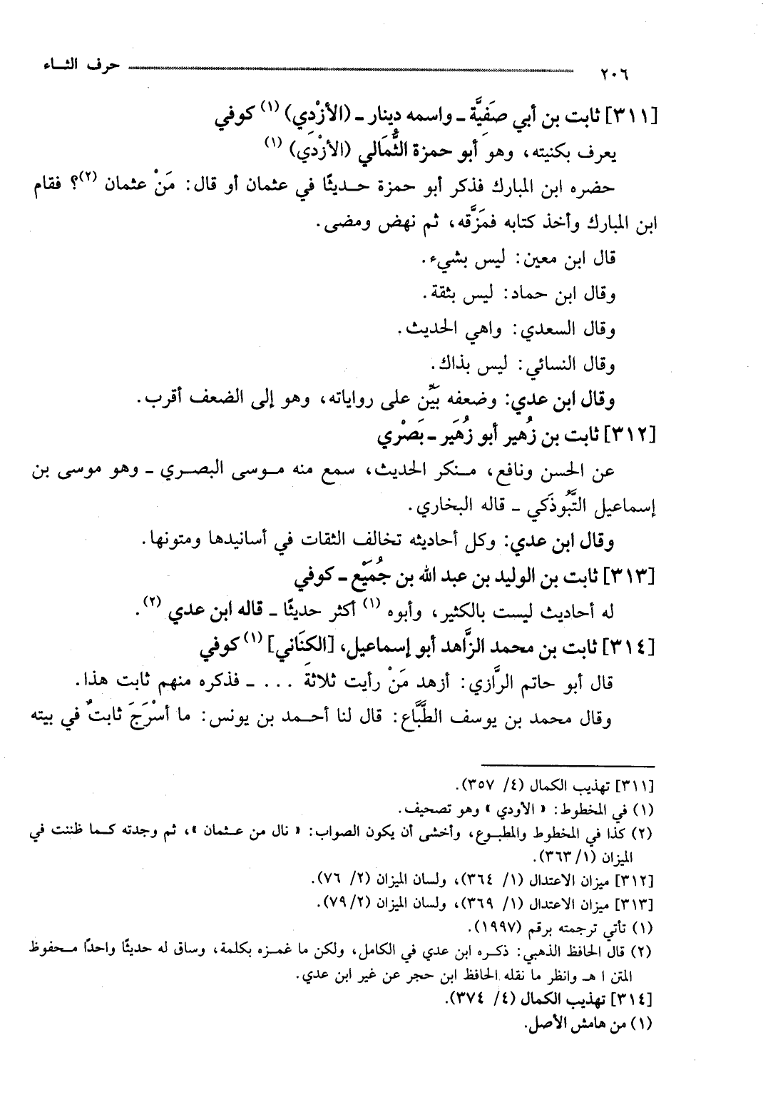 [314] ثَابت بن مُحَمَّد الزَّاهِد أَبُو إِسْمَاعِيل، [الْكِنَانِي] كُوفِي