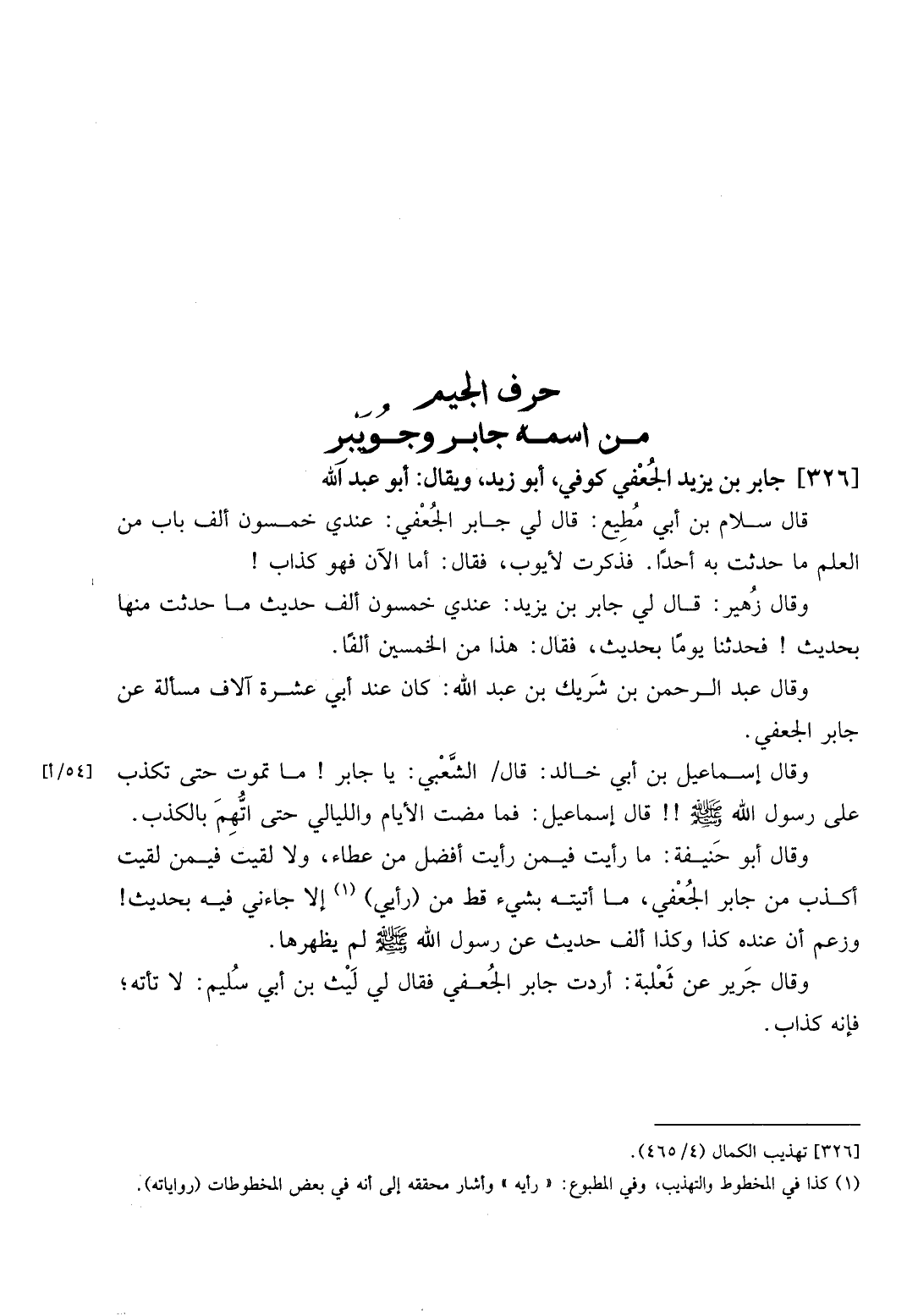 [326] جَابر بن يزِيد الْجعْفِيّ كُوفِي، أَبُو زيد، وَيُقَال: أَبُو عبد الله