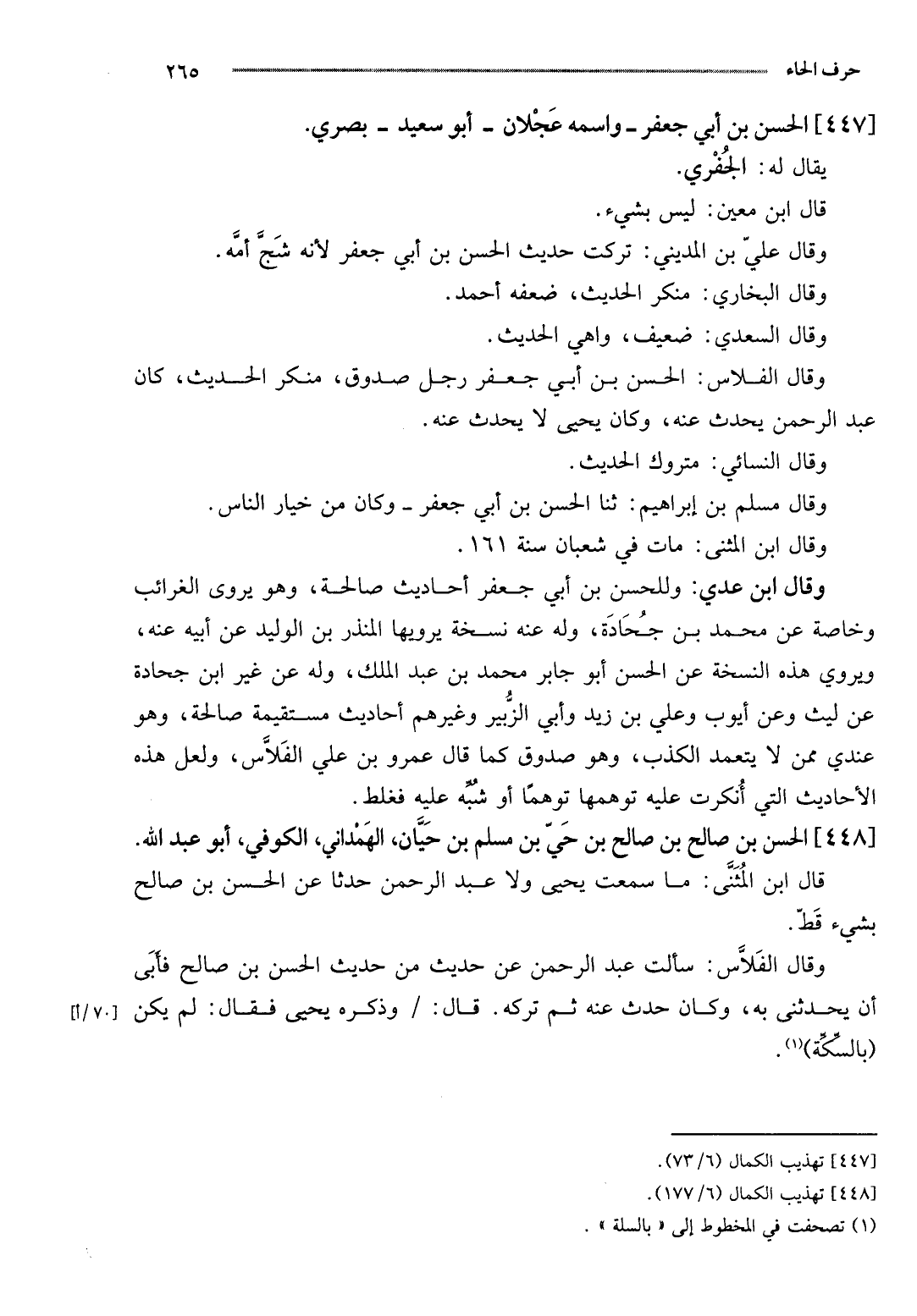 [447] الْحسن بن أبي جَعْفَر - واسْمه عجلَان - أَبُو سعيد - بَصرِي.