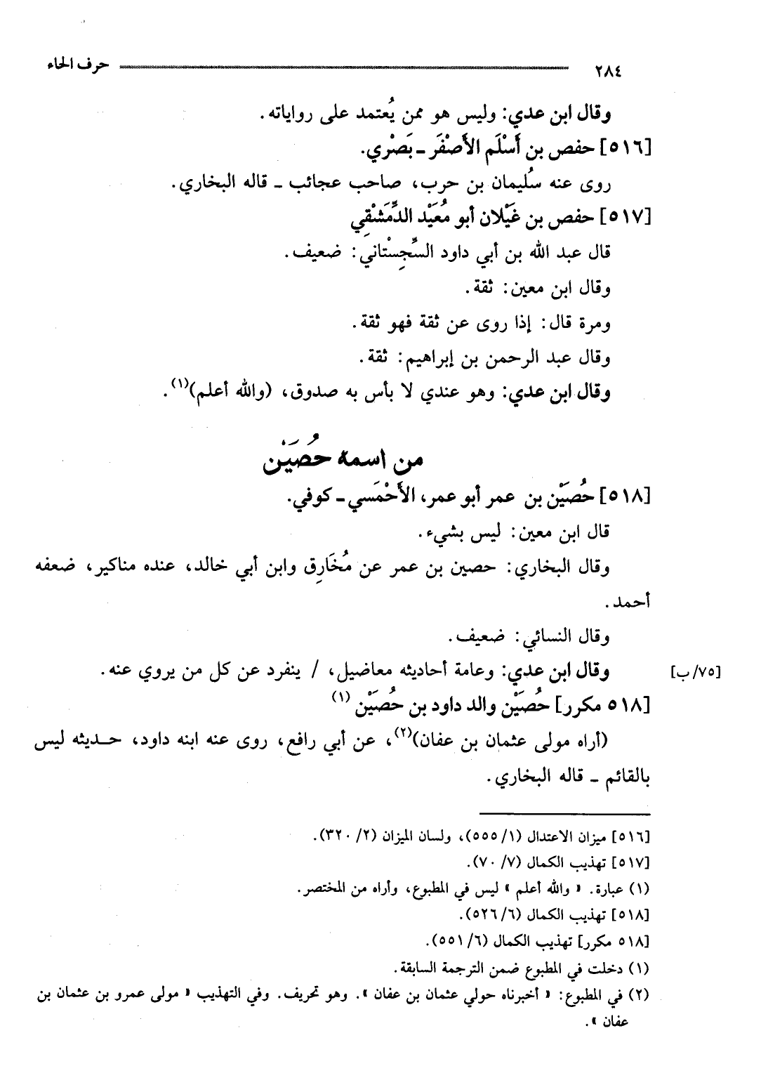 [518 مُكَرر] حُصَيْن وَالِد دَاوُد بن حُصَيْن