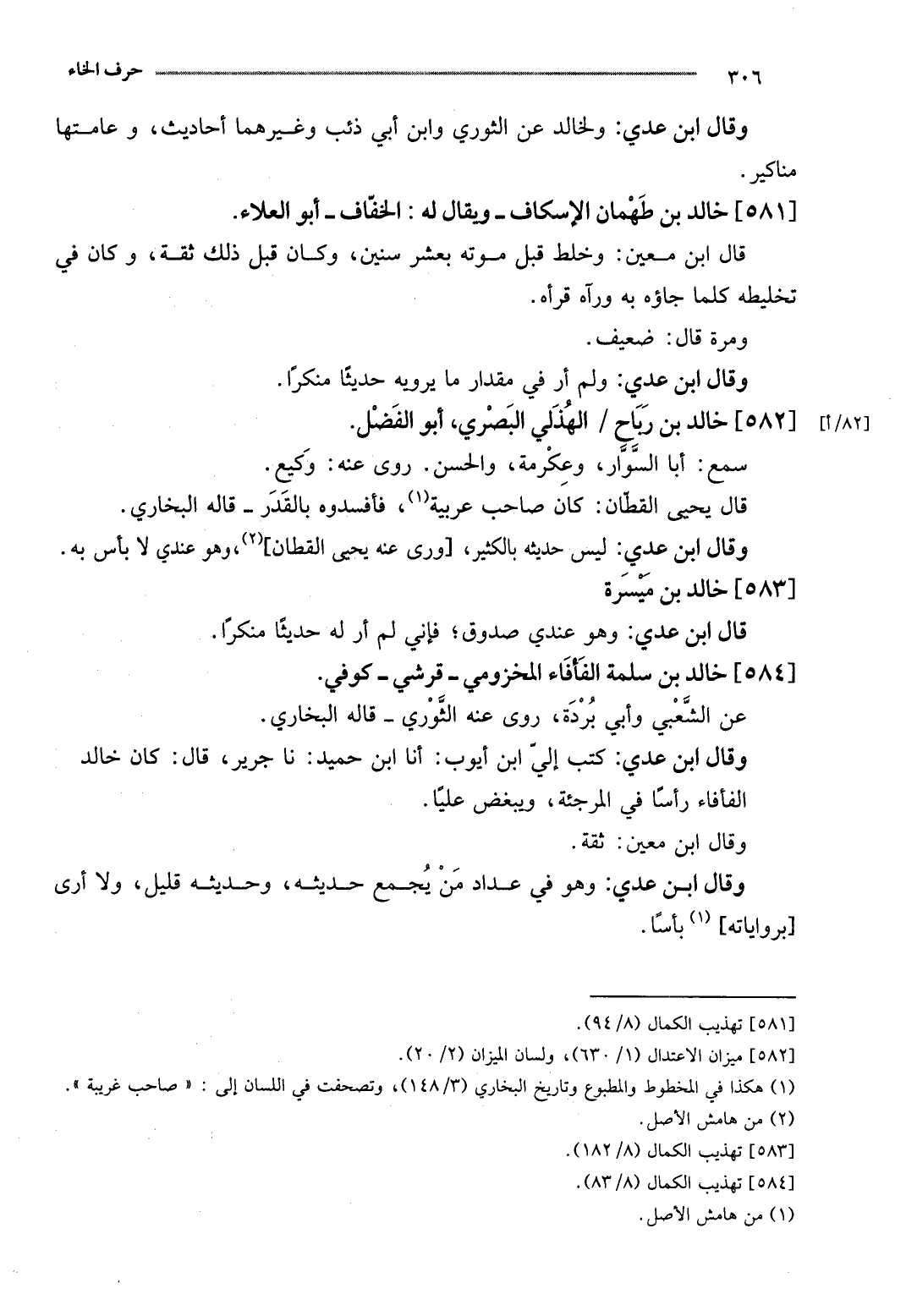 [581] خَالِد بن طهْمَان الإسكاف - وَيُقَال لَهُ: الْخفاف - أَبُو الْعَلَاء.
