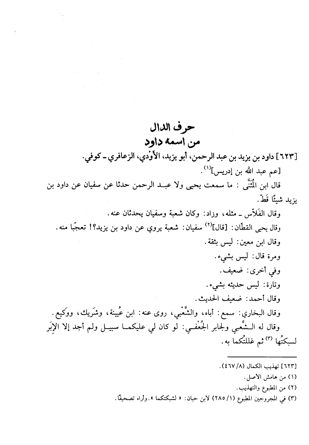 [623] دَاوُد بن يزِيد بن عبد الرَّحْمَن، أَبُو يزِيد، الأودي، الزعافري - كُوفِي.