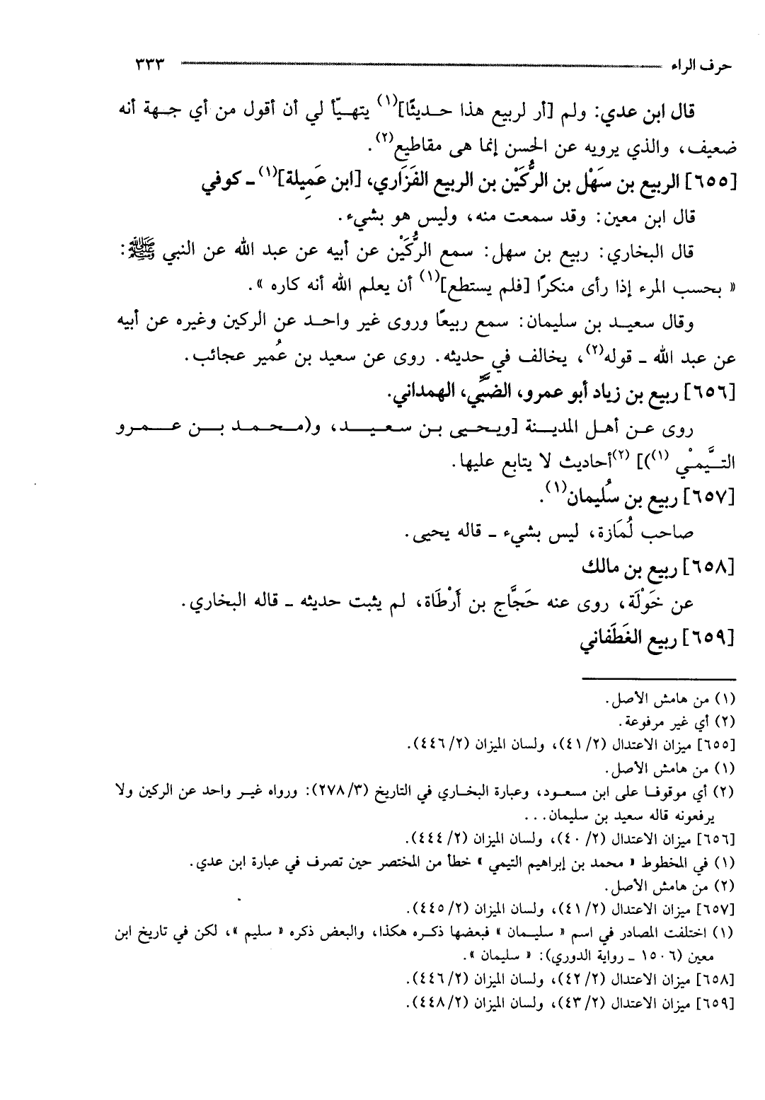 قَالَ ابْن عدي: وَلم [أر لربيع هَذَا حَدِيثا] يتهيأ لي أَن أَقُول من أَي جِهَة أَنه ضَعِيف، وَالَّذِي يرويهِ عَن الْحسن إِنَّمَا هِيَ مقاطيع.