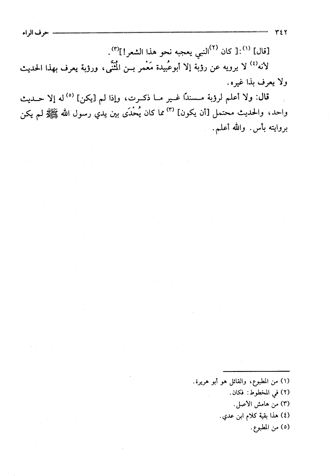 [قَالَ] : [كَانَ النَّبِي يُعجبهُ نَحْو هَذَا الشّعْر!] .