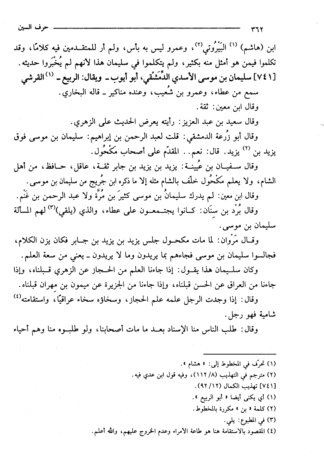 [741] سُلَيْمَان بن مُوسَى الْأَسدي الدِّمَشْقِي، أَبُو أَيُّوب - وَيُقَال: الرّبيع - الْقرشِي
