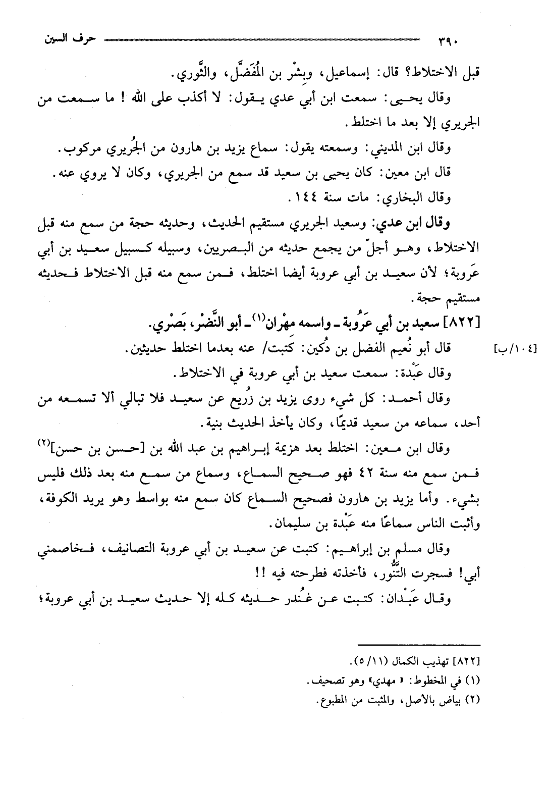 [822] سعيد بن أبي عرُوبَة - واسْمه مهْرَان - أَبُو النَّضر، بَصرِي.