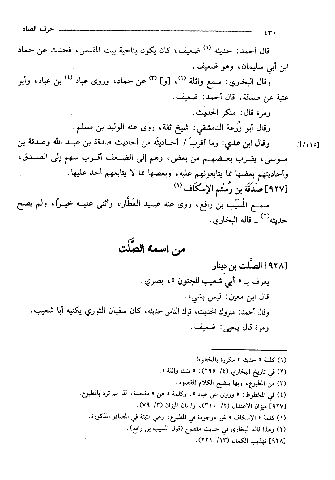وَقَالَ البُخَارِيّ: سمع وَاثِلَة، [و] عَن حَمَّاد، وروى عباد بن عباد، وَأَبُو عتبَة عَن صَدَقَة، قَالَ أَحْمد: ضَعِيف.