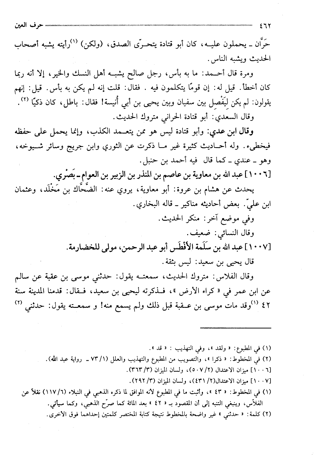 حران - يحملون عَلَيْهِ، كَانَ أَبُو قَتَادَة يتحَرَّى الصدْق، (وَلَكِن) رَأَيْته يشبه أَصْحَاب الحَدِيث وَيُشبه النَّاس.
