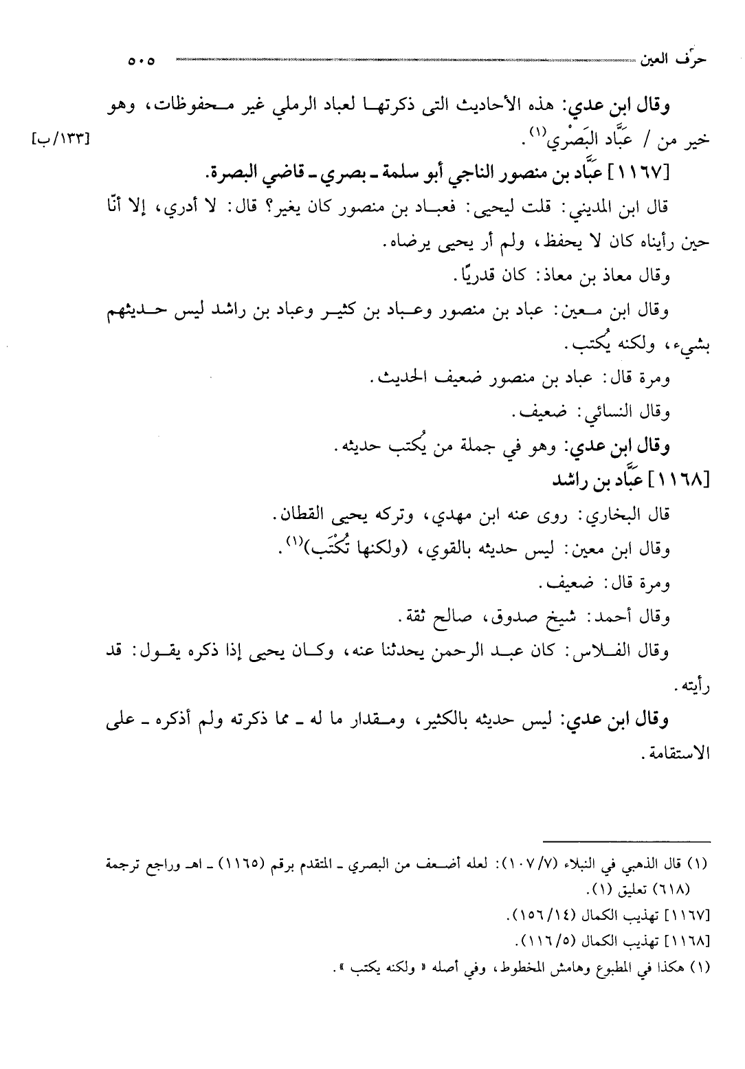 وَقَالَ ابْن عدي: هَذِه الْأَحَادِيث الَّتِي ذكرتها لعباد الرَّمْلِيّ غير محفوظات، وَهُوَ خير من / عباد الْبَصْرِيّ.