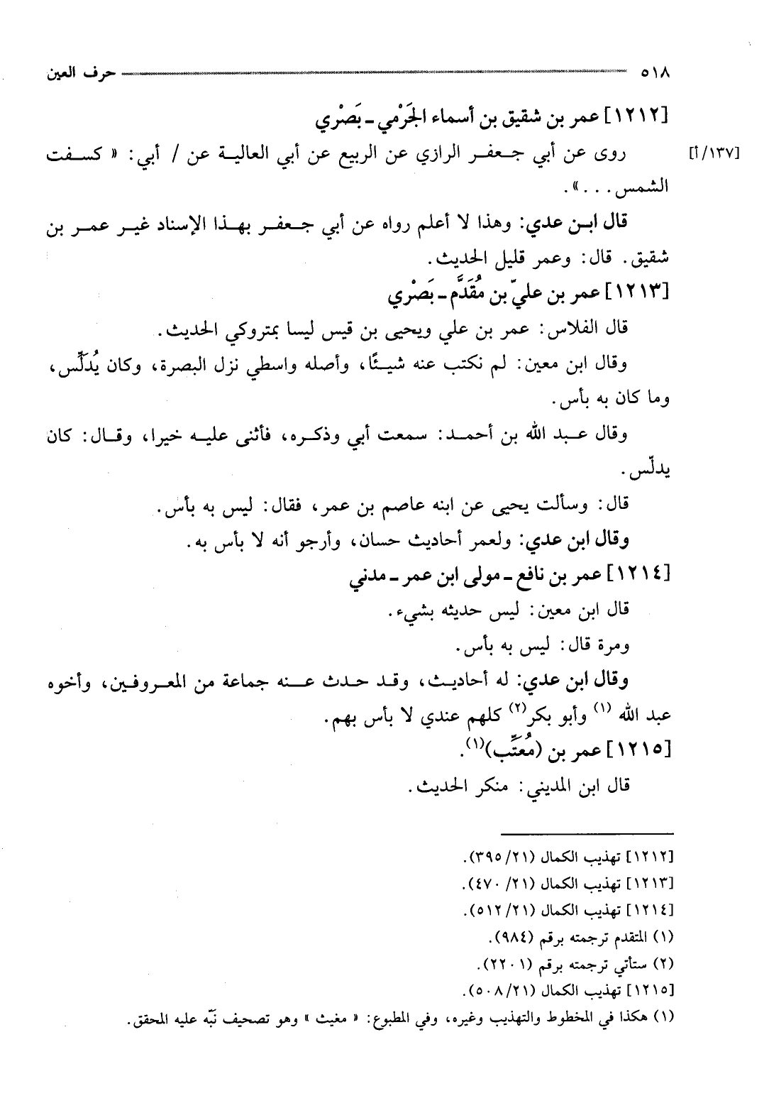 [1212] عمر بن شَقِيق بن أَسمَاء الْجرْمِي - بَصرِي