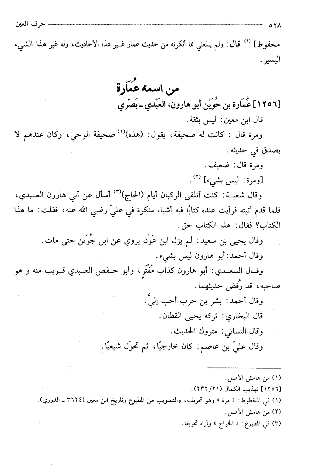 [1256] عمَارَة بن جُوَيْن أَبُو هَارُون، الْعَبْدي - بَصرِي