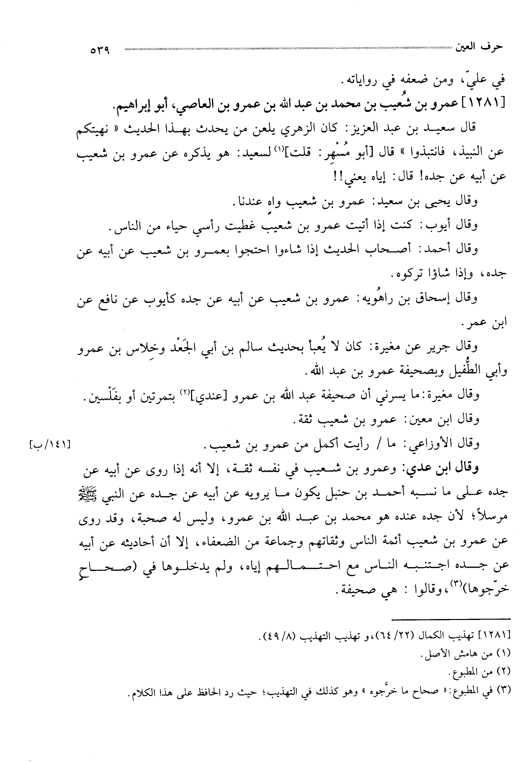 [1281] عَمْرو بن شُعَيْب بن مُحَمَّد بن عبد الله بن عَمْرو بن العَاصِي، أَبُو إِبْرَاهِيم.