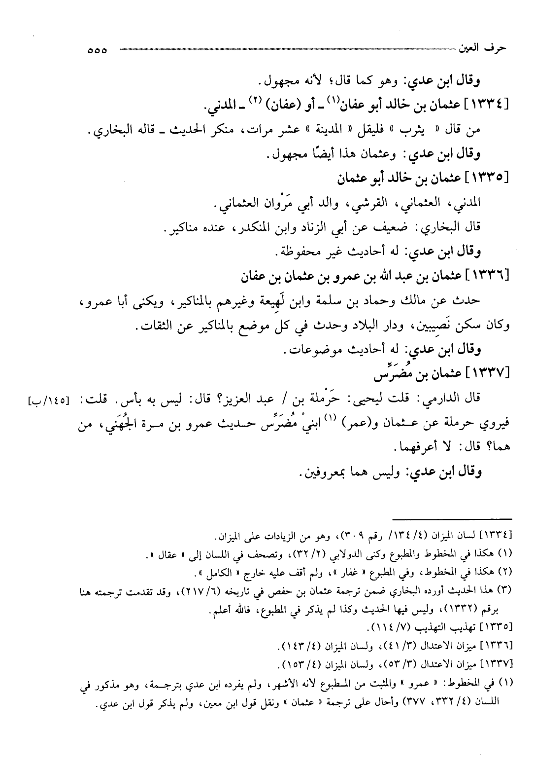 وَقَالَ ابْن عدي: وَعُثْمَان هَذَا أَيْضا مَجْهُول.