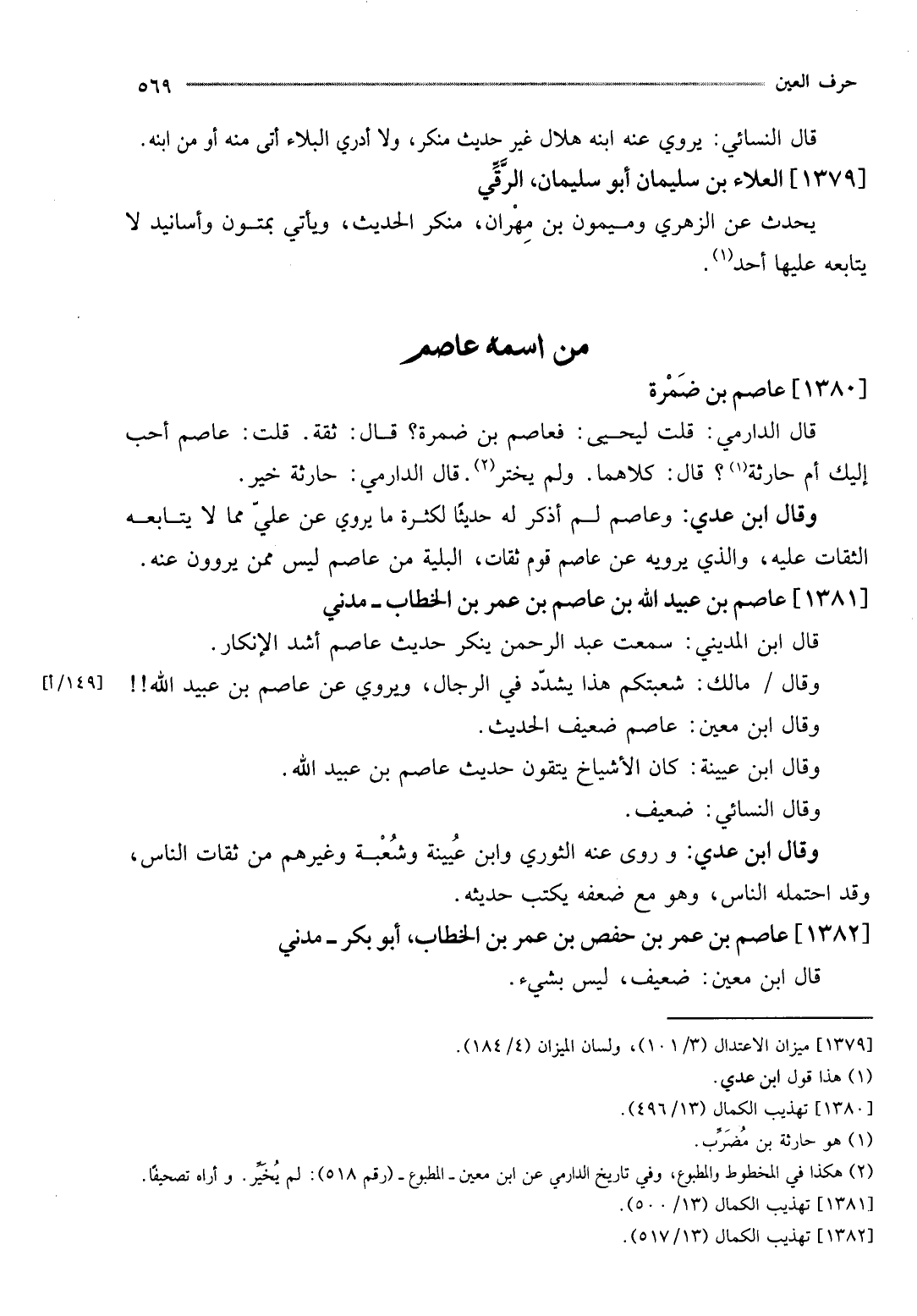 وَقَالَ ابْن معِين: عَاصِم ضَعِيف الحَدِيث.