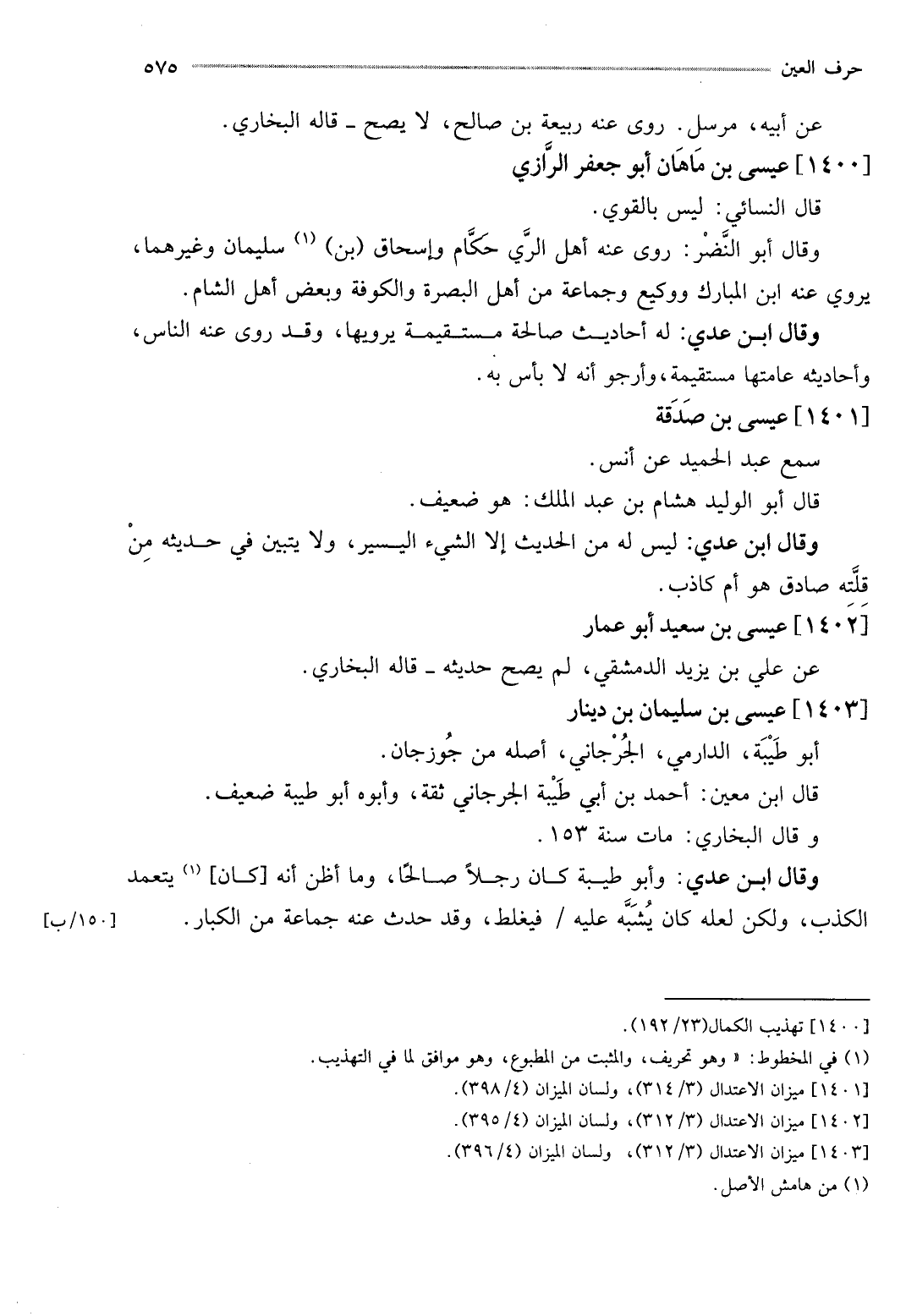[1400] عِيسَى بن ماهان أَبُو جَعْفَر الرَّازِيّ