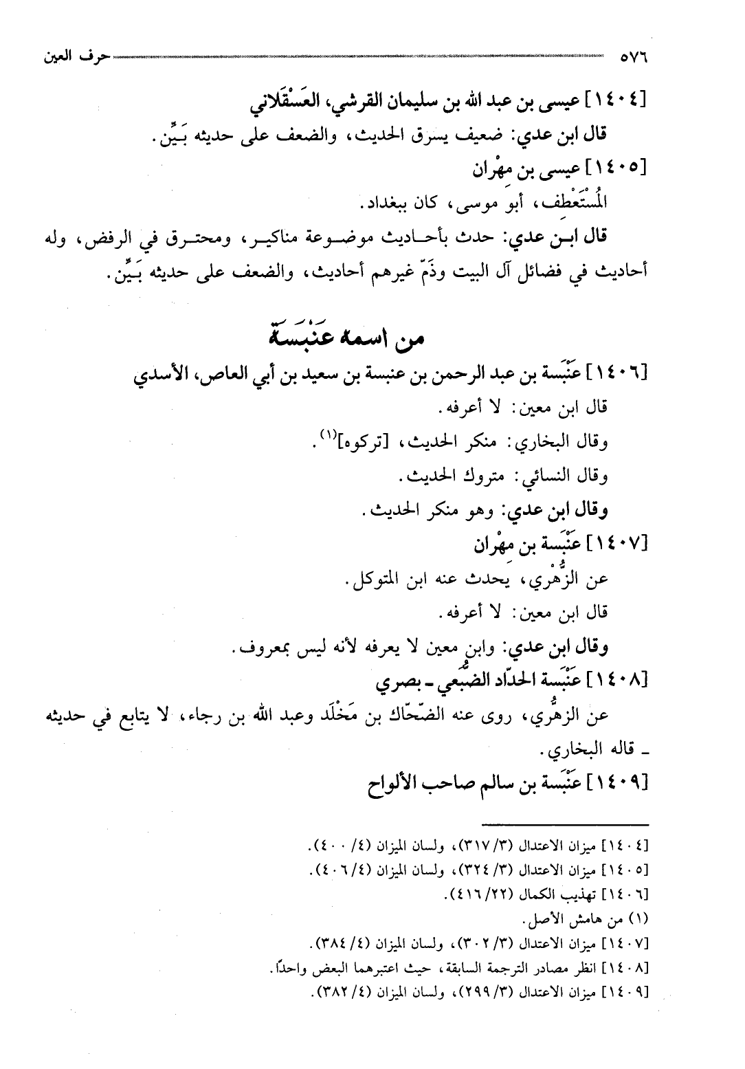 [1406] عَنْبَسَة بن عبد الرَّحْمَن بن عَنْبَسَة بن سعيد بن أبي الْعَاصِ، الْأَسدي