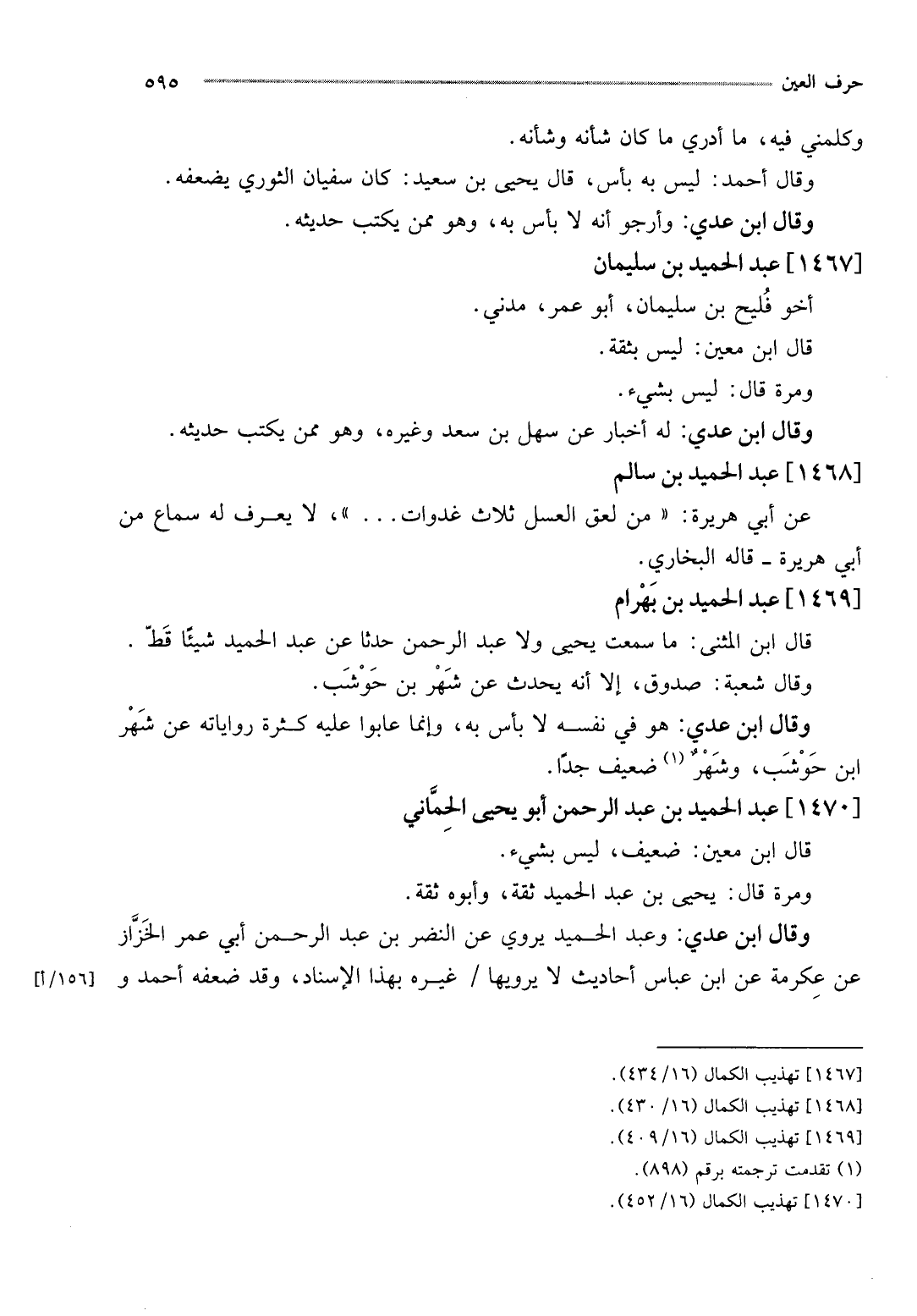 [1470] عبد الحميد بن عبد الرَّحْمَن أَبُو يحيى الْحمانِي